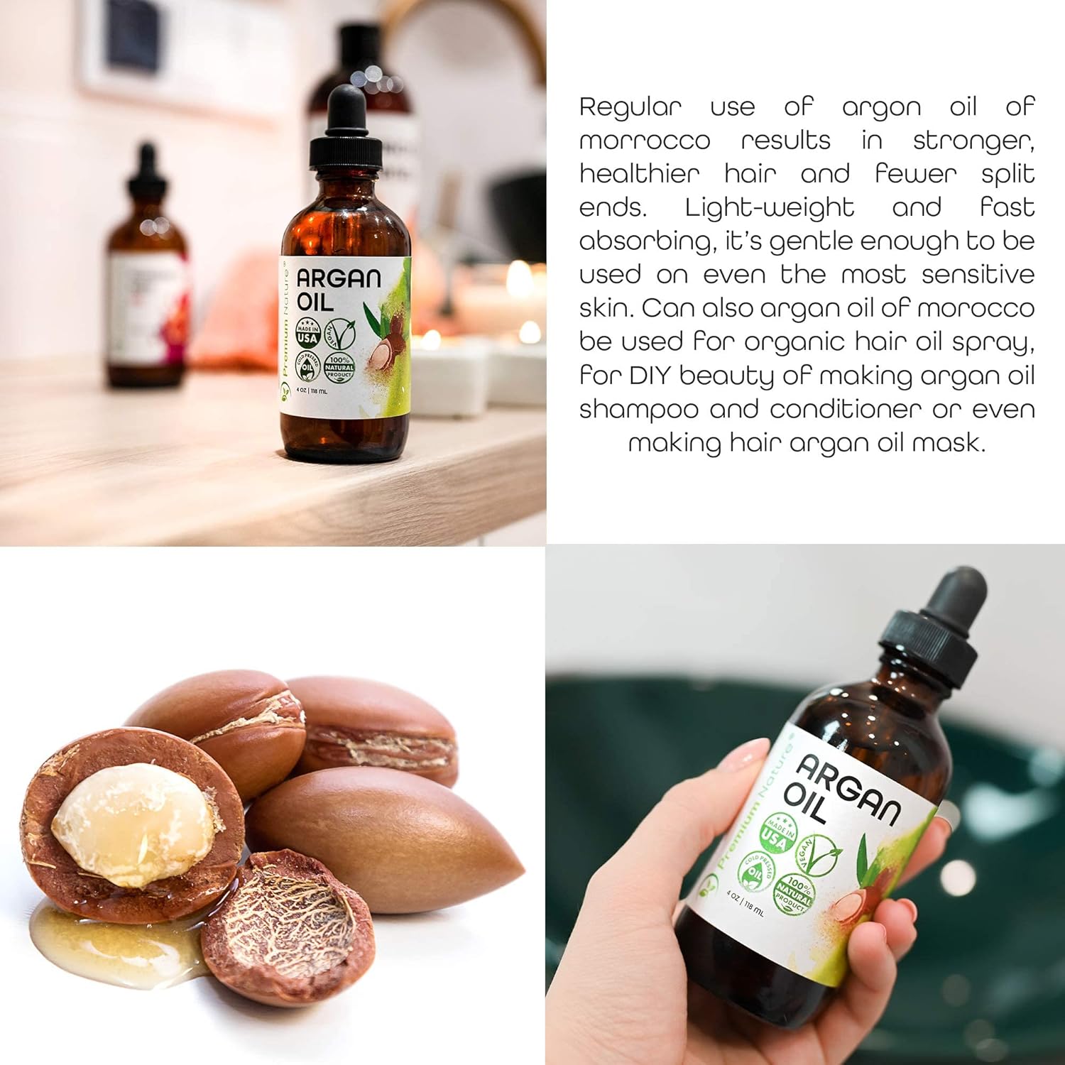 Premium Nature Argan Oil For Hair Virgin 100% Pure Cold Pressed Argon Oil Hair Serum For Hair Stimulate Growth For Dry And Damaged Hair Argan Oil For Skin Body Moisturizer Nails Protector 4 Oz