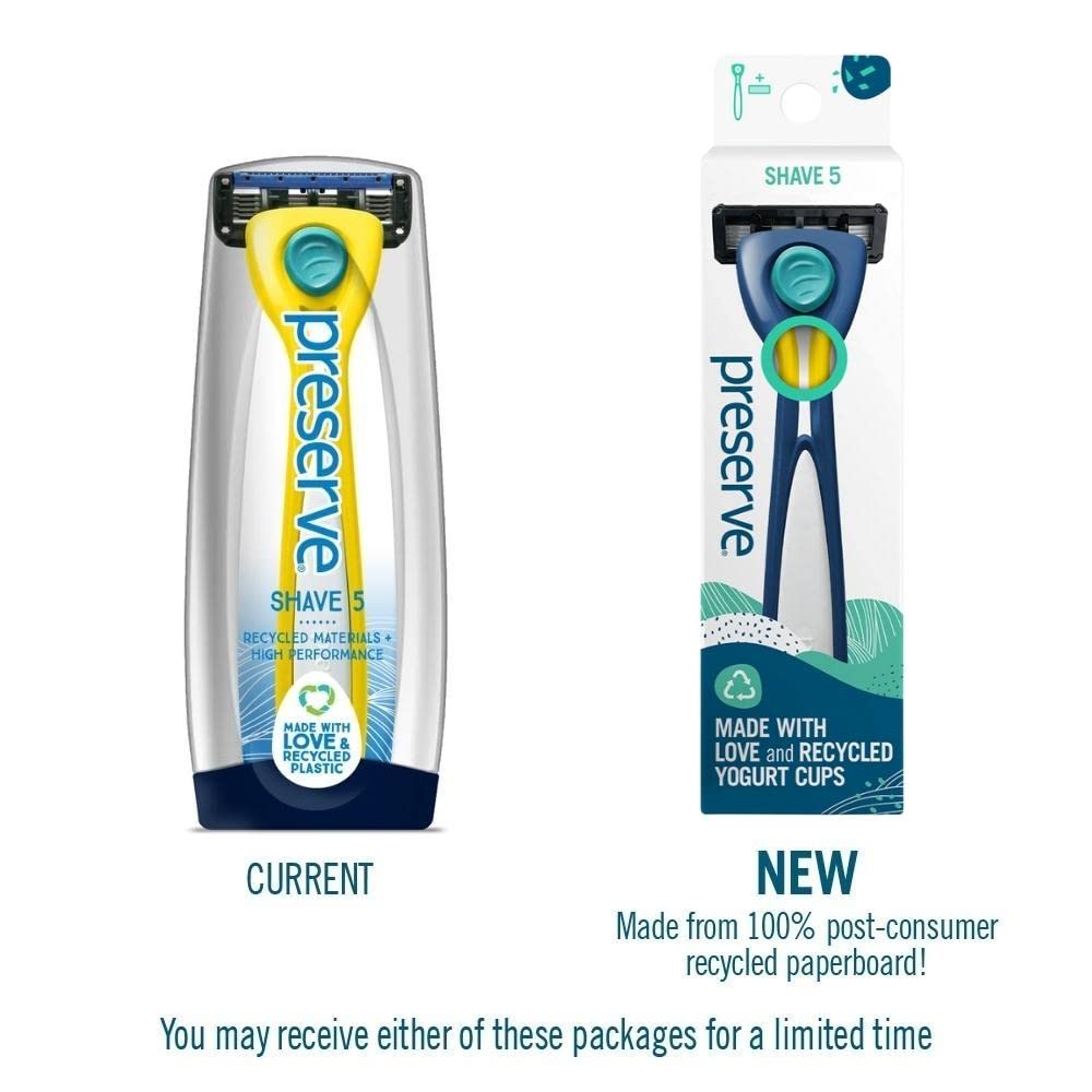 Preserve Shave 5 Five Blade Refillable Razor, Made From Recycled Materials, Sunshine Yellow And Preserve Five Blade Replacement Cartridges Wave Edition (4 Count) Bundle