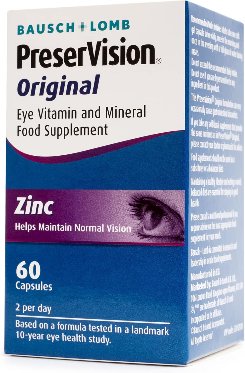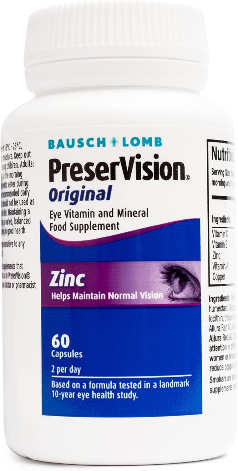 Preservision Original By Bausch + Lomb, Eye Vitamin And Mineral Food Supplement, Zinc, Copper And Vitamin C, E And A, Two Eye Supplement Soft Gel Capsules Per Day