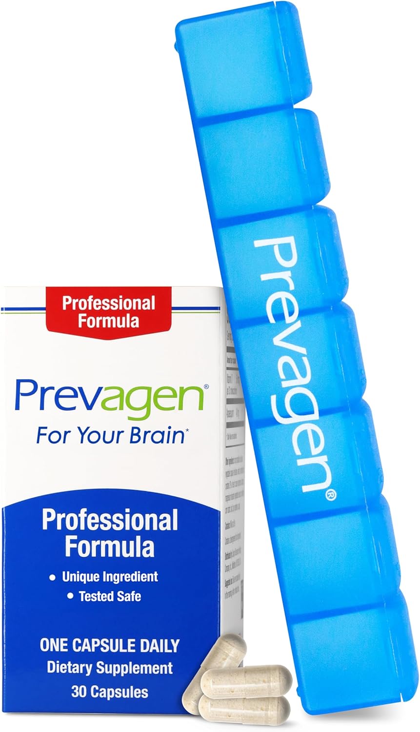 About this item For Your Brain: Prevagen Professional Formula is for your brain and comes in an easy to swallow capsule. For best results, just take ONE A DAY, in the morning, with or without food. Unique & Safe Ingredient: Apoaequorin, the unique ingredient in Prevagen, is a supplement formulated for your brain and has undergone extensive Safety Testing. Tests for allergenicity and toxicity have been conducted. Third party experts agree that PREVAGEN IS SAFE. Once Daily: A once daily and easy to swallow capsule formulated for your brain. #1 Selling Brain* Supplement NATIONWIDE For Over 10 Years. Prevagen, Inc. calculation based on Syndicated US NIQ Total Store including Fresh β 10 years database for the Mental Performance (Brain) Supplement category/segment last 10 years, week ending March 22, 2025 time period. Copyright (c) 2025, Nielsen Consumer LLC. 7-Day Pill Minder Included: Includes a 7-day Pill Minder to help you stay organized. BPA free, letters & Braille for days of the week Verify Authenticity with Transparency: This product is protected by Transparency by Amazon, which verifies each unit's authenticity. To download the Transparency app, get it on the App Store or Google Play. The app will display a green checkmark when a product has been verified as authentic. See more product details,For Your Brain: Prevagen Professional Formula is for your brain and comes in an easy to swallow capsule. For best results, just take ONE A DAY, in the morning, with or without food,Unique & Safe Ingredient: Apoaequorin, the unique ingredient in Prevagen, is a supplement formulated for your brain and has undergone extensive Safety Testing. Tests for allergenicity and toxicity have been conducted. Third party experts agree that PREVAGEN IS SAFE,Once Daily: A once daily and easy to swallow capsule formulated for your brain,#1 Selling Brain* Supplement NATIONWIDE For Over 10 Years. Prevagen, Inc. calculation based on Syndicated US NIQ Total Store including Fresh β 10 years database for the Mental Performance (Brain) Supplement category/segment last 10 years, week ending March 22, 2025 time period. Copyright (c) 2025, Nielsen Consumer LLC,7-Day Pill Minder Included: Includes a 7-day Pill Minder to help you stay organized. BPA free, letters & Braille for days of the week,Verify Authenticity with Transparency: This product is protected by Transparency by Amazon, which verifies each unit's authenticity. To download the Transparency app, get it on the App Store or Google Play. The app will display a green checkmark when a product has been verified as authentic