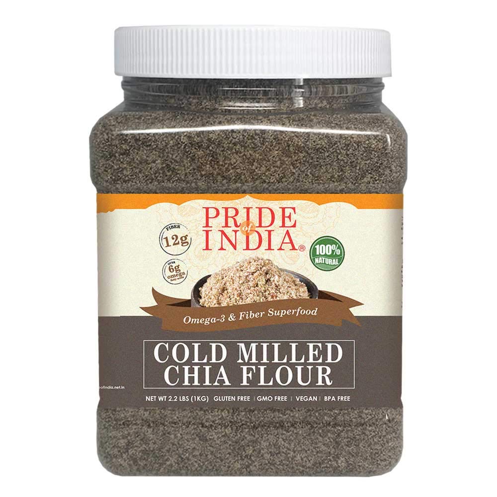Pride Of India Raw Black Chia Seed Meal Flour - Cold Milled - Omega-3 & Fiber Superfood
