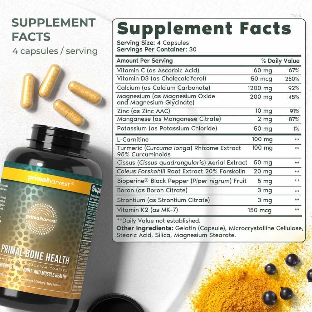 Primal Harvest 2 Pack, Primal Bone Health Calcium Carbonate Bone Health Complex For Men & Women With Calcium, Magnesium, Zinc, Manganese, Potassium, & L-Carnitine (240 Capsules)