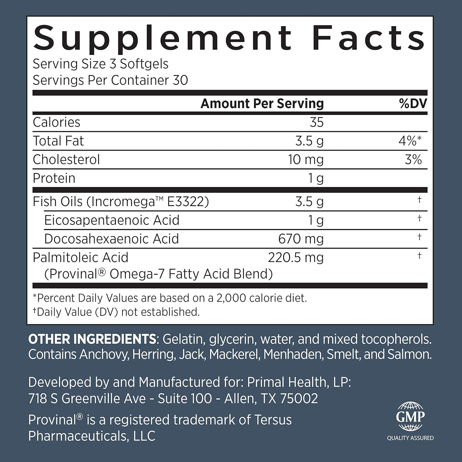 DESCRIPTION : Primal Labs DuOmega 3&7 Fish Oil Supplement with Omega 3, 90 Count