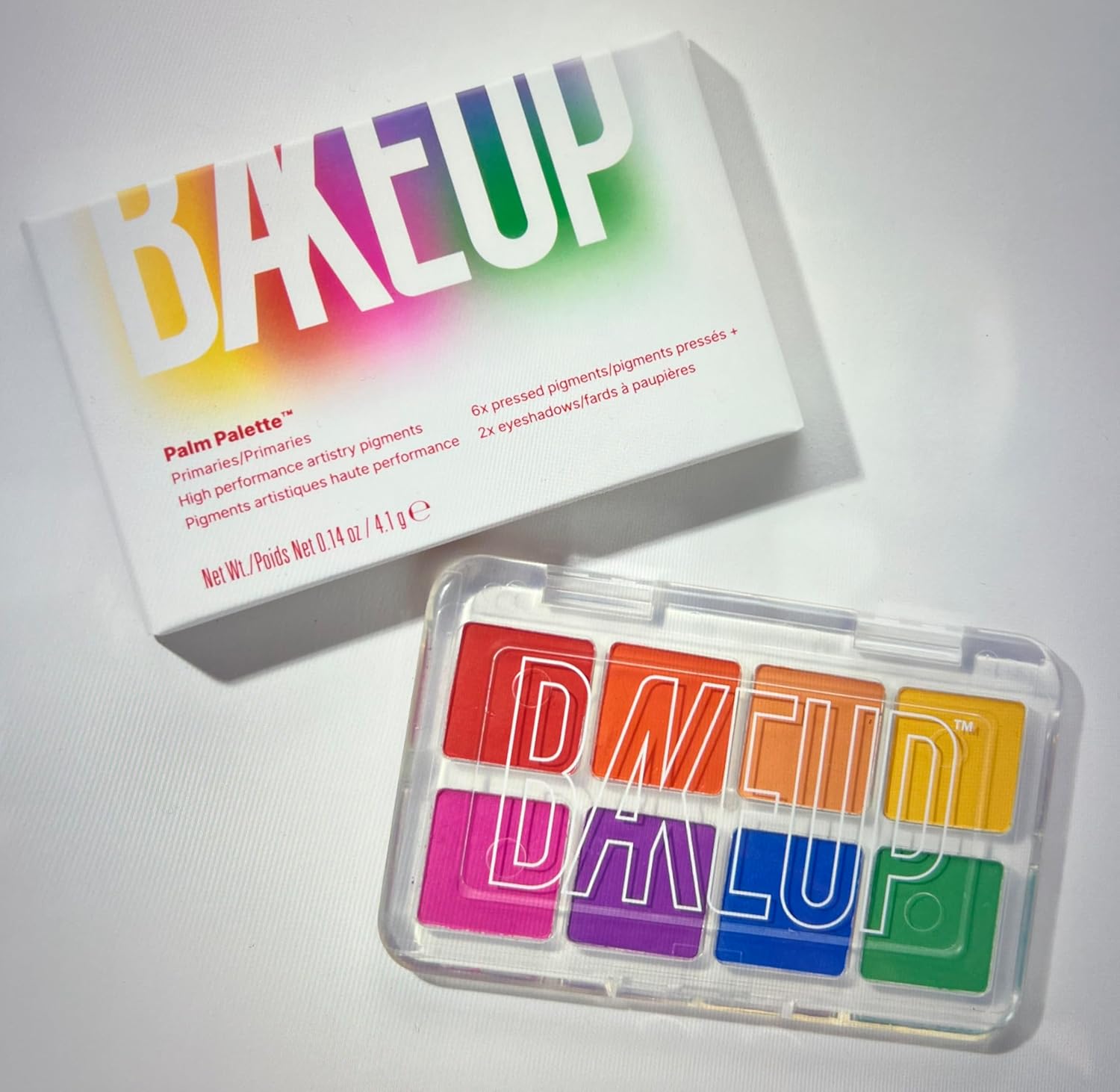 Primary Eyeshadow Palette - Micro Palm Unleash your creativity with these high-performance makeup pigments. These bold, matte primaries represent foundational colors that are anything but basic. This micro palette of eight buttery, buildable shades was designed to fit perfectly in the palm of your hand. Each can be mixed and matched (with a flat brush or just your fingertips) for endless looks. So go on - live life in primal, vivid colors,At BAKEUP we believe that your *getting-ready-time* should be about creative expression and play. Celebrity makeup artist, Jo Baker, used her 20+ years of industry experience to create products worthy of (and tested on) the red carpet! BAKEUP is here to arm you with the tools to express your individuality through makeup looks that will stay put, day & night,These vibrant, matte primaries represent foundational colors, empowering you to express your primary emotions through your makeup looks. Velvety, blendable formulas are highly-pigmented and perfect for adding a pop of bold color,Micro Palm Palettes fit perfectly in the palm of your hand & are great for on the go! These high-performance pigments are vegan, cruelty-free and made with thoughtfully chosen ingredients while providing maximum payoff without additives like parabens, talc and phthalates,Directions: Start with primer. Don't be afraid to skip the makeup brush and just use your fingertips to apply color. Apply eyeshadow shades wherever you wish: whether a swipe of color in your lower lash line or a pop of color in the corner of your eye. Experiment with pressed pigment shades on your temples, brow bone or even as a blush. Pressed Pigments are not for use on eyelids or near eyes,From day one, BAKEUP has set out to break the mold on traditional beauty standards that have dictated our makeup routines for far too long. We want to unleash your inner red carpet rebel with looks that inspire confidence from products that were formulated with both utility and having fun in mind