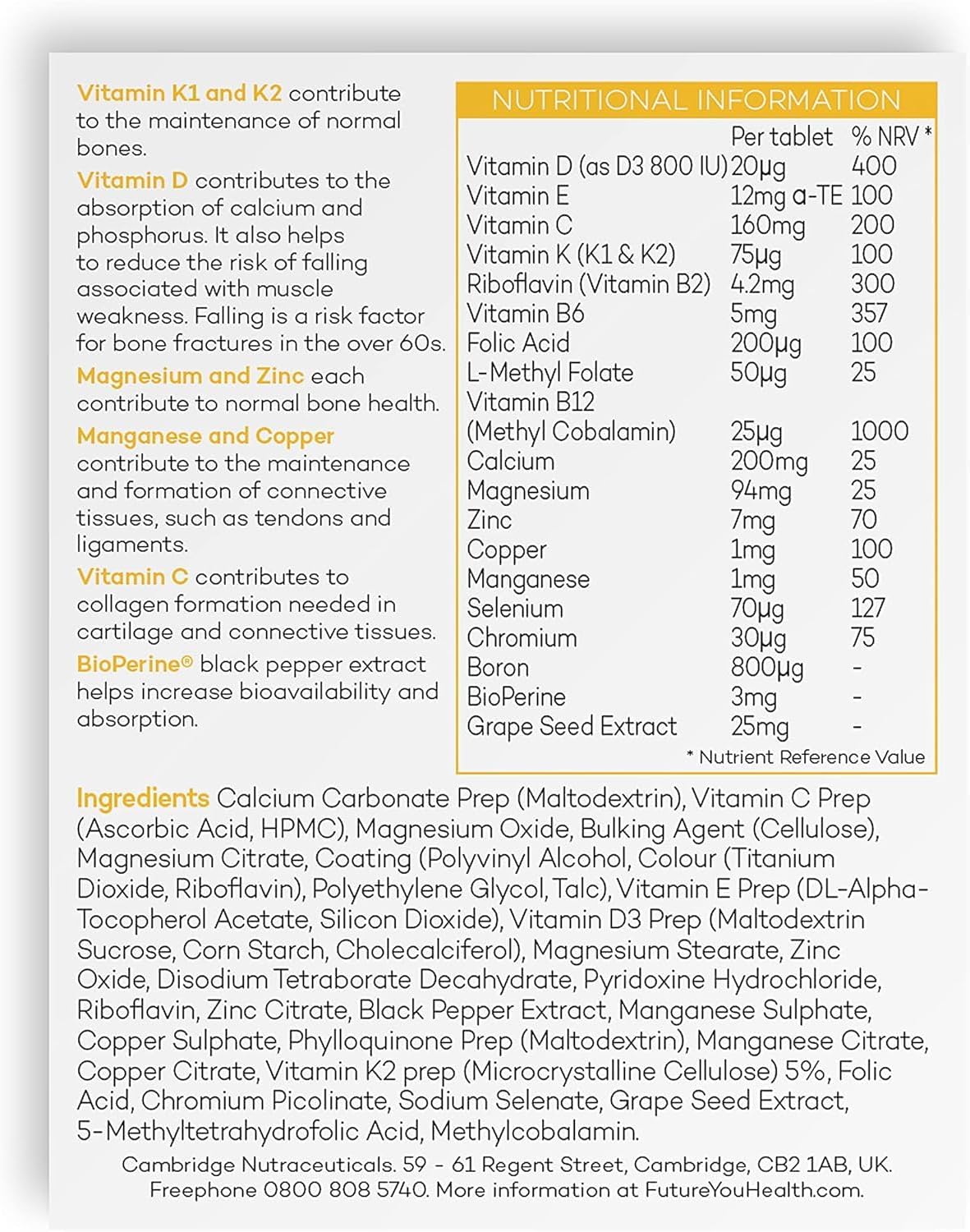 Prime Fifty Strong Bones Supplements – 120 Multivitamin Tablets With Calcium, Magnesium, Zinc, Copper & Vitamins – Developed For Over 50S To Help Keep You Active