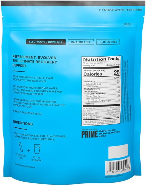 BULLET POINTS : 1 > HYDRATION ON-THE-GO: Our same iconic hydration flavors, now in powder form! Perfect for travel, early mornings, gym bags – our Earth-shattering Hydration formulas are available in portable sticks that are easy to open, pour, shake and drink. PRIME stick packs have low sugar to provide hydration when you need it most, without the added sugar that you don’t