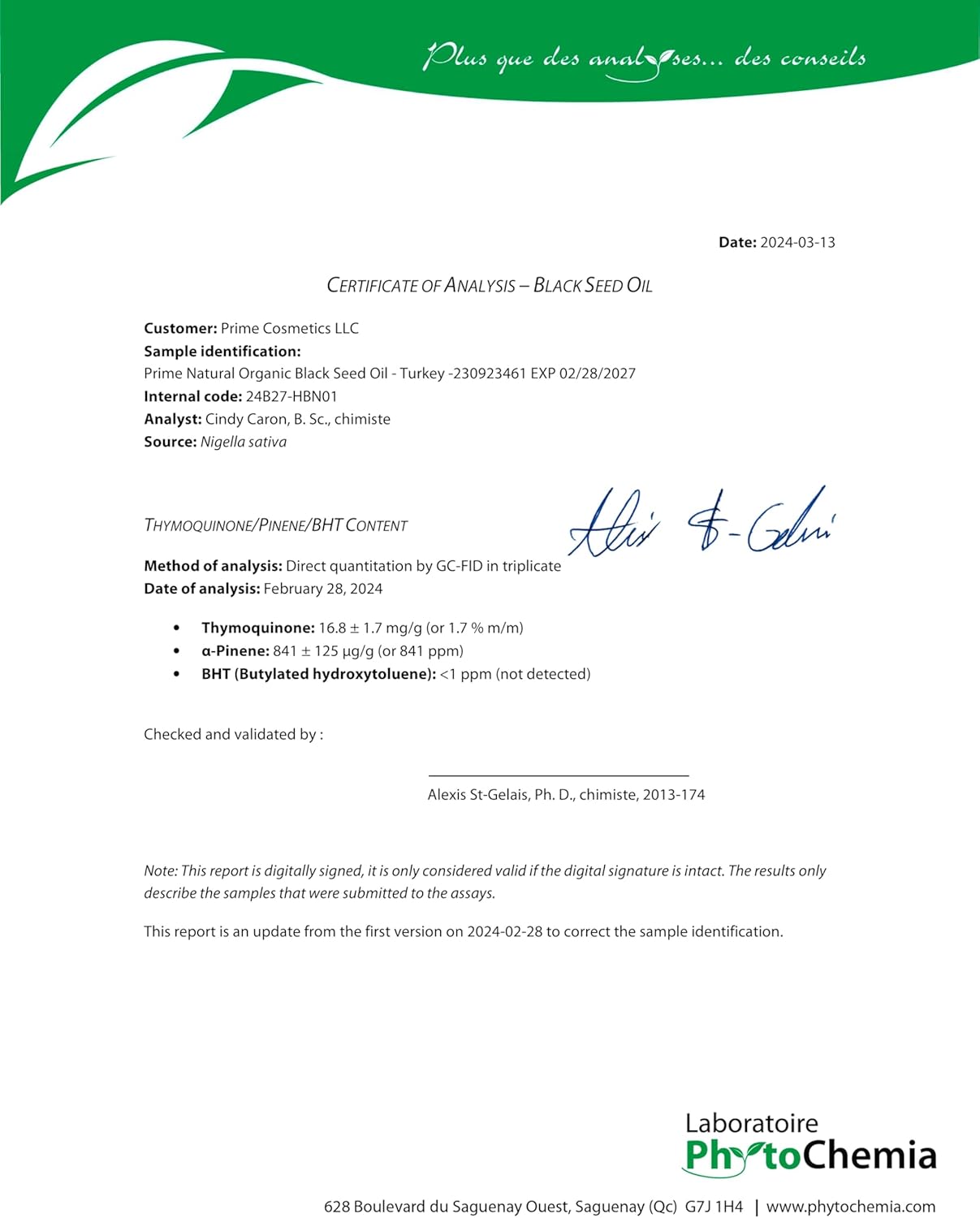 Prime Natural Organic Black Seed Oil 8Oz | Cold Pressed Unrefined High Thymoquinone 1.7% Usda Certified | Turkish Origin Potent Pure Nigella Sativa Liquid | Vegan Omega 3 6 9, Antioxidant