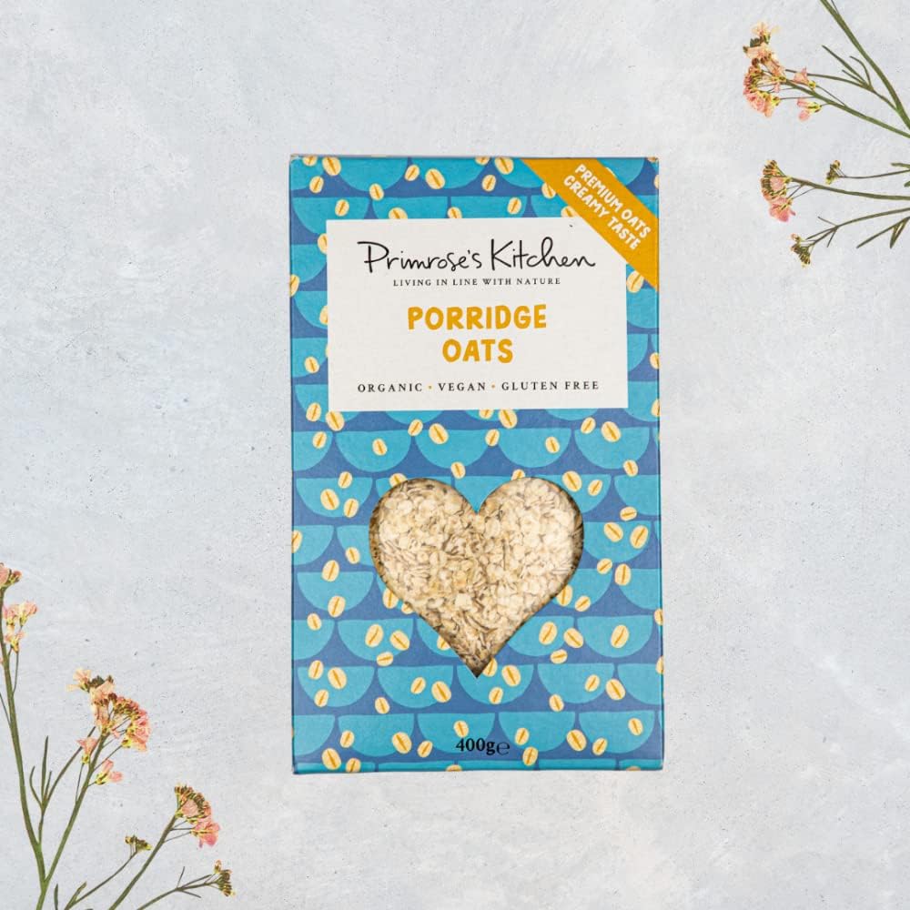 Primrose'S Kitchen - Organic Porridge Oats, 400G (Pack Of 6) Gluten Free Jumbo Oats Natural & Wheat Free. A Great Source Of Iron, Protein, Folate, Vitamin B1 & Prebiotic Fibre With No Added Sugar