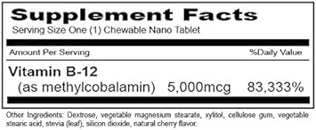 Vitamin B12 โ 5,000mcg supplement of Methylcobalamin (Methyl B-12) - Max Strength High potency clinical strength 5mg per tablet