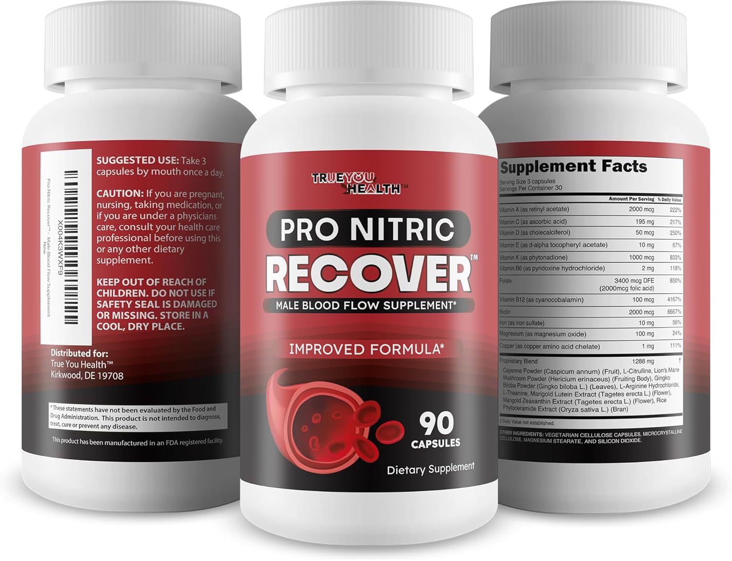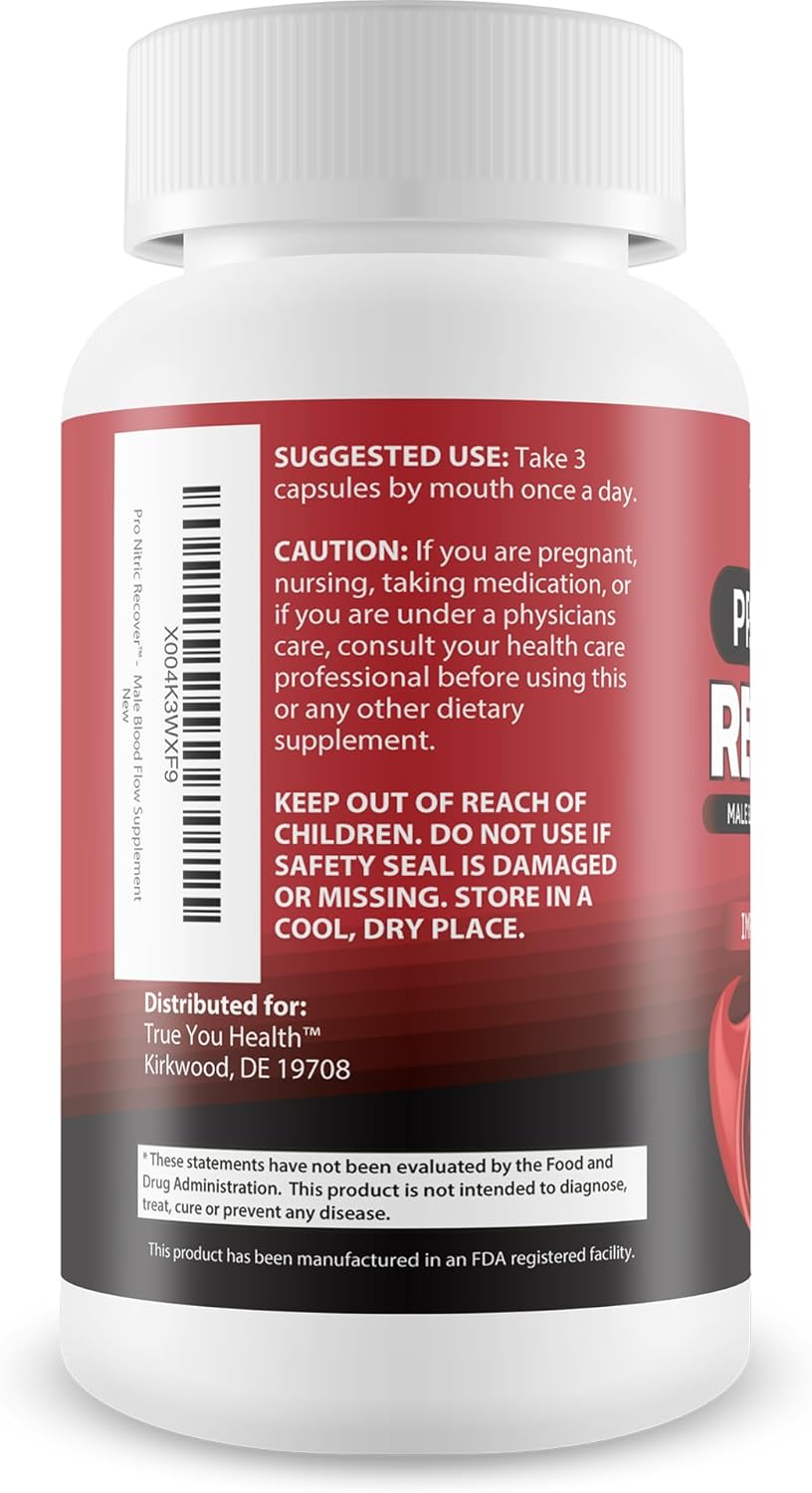 HEAD TO TOE BLOOD FLOW CIRCULATION SUPPORT - Pro Nitric Recover male pills are crafted to enhance circulation throughout the body. Whether you need a leg vein circulation supplement, vitamin blood flow support for men, foot circulation supplement, circulation vein supplements, vasodilator niacin blood circulation pills for the head, or natural blood circulation supplements for legs and hand blood flow, this nitric oxide blood flow 7 circulation 90 cap formula has you covered. These men blood flow natural circulation supplements for poor blood circulation also contain ingredients to maintain optimal blood vessel health, making them ideal female and male circulation supplements