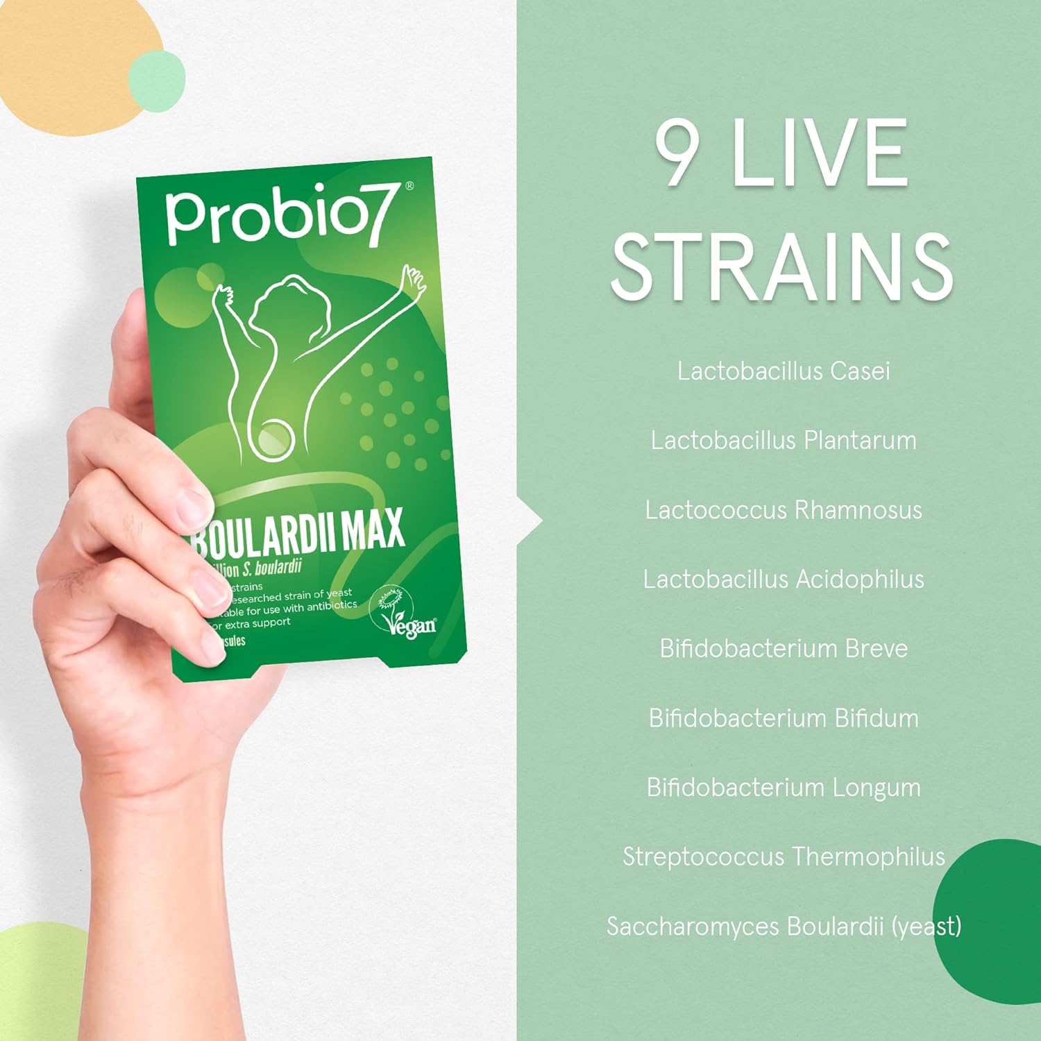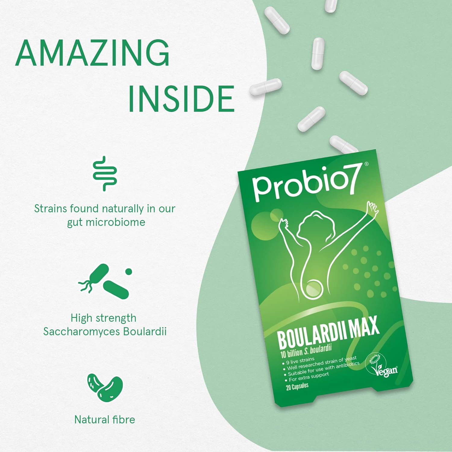 Probio7 Boulardii Max | High Strength Saccharomyces Boulardii | 10 Billion Cfu | | 9 Live Strains | Friendly Yeast And Bacteria In One Capsule | Vegan (20 Capsules)