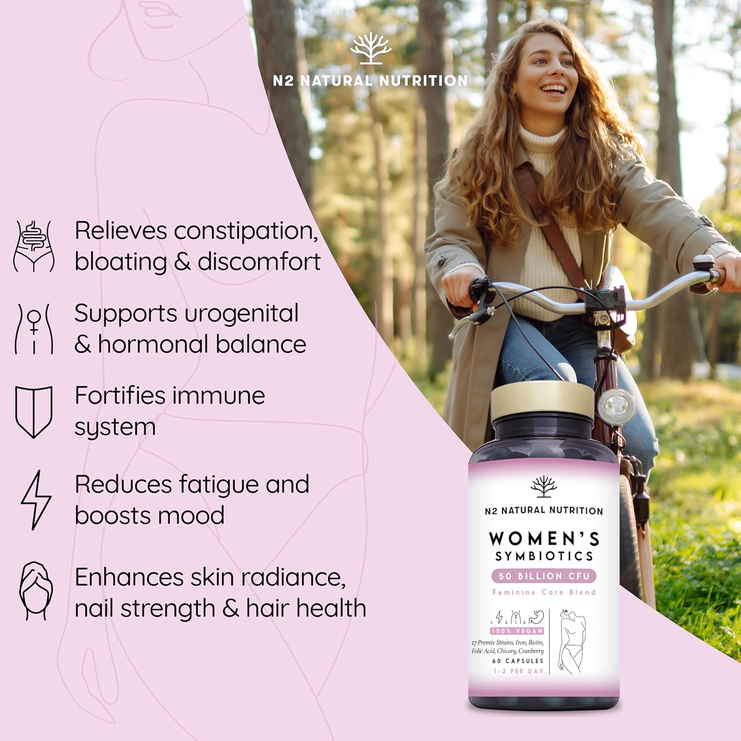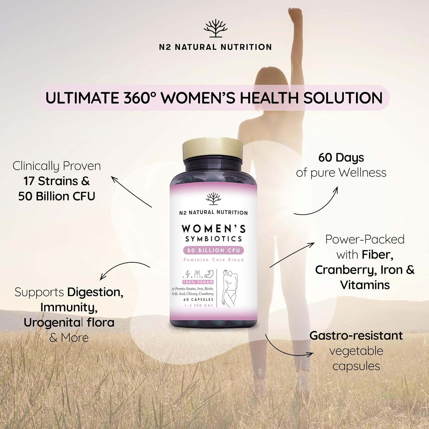 Probiotics For Women 300 Billion Cfu/Gr* 17 Multi Strains, 360 Female Health Solution For Gut, Vaginal, Urinary, Skin Health. Hormonal Balance & Vaginal Probiotics 60 Caps N2 Natural Nutrition
