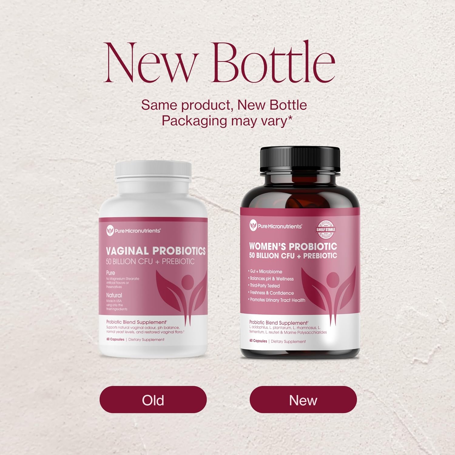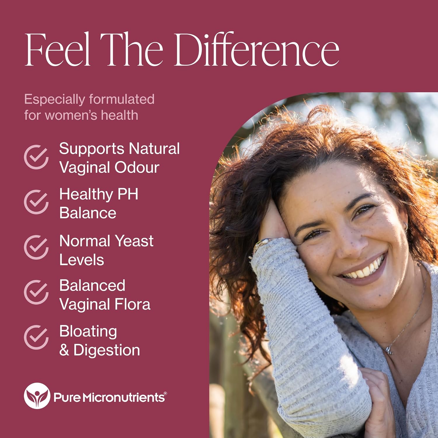 About this item NO MORE BV, UTIs & YEAST: 50 Billion CFU per serve probiotics for women with Lactobacillus Acidophilus & prebiotics support vaginal probiotics, gut health & urinary tract care. RESTORE PH BALANCE & VAGINAL HEALTH: Women's probiotic supports vaginal flora, combats odor, infections & promotes feminine pH balance for optimal wellness. DIGESTIVE & GUT HEALTH SUPPORT: Probiotics and prebiotics for women relieve bloating, constipation & support gut health, digestion & immune function. SLOW-RELEASE & SHELF-STABLE: Our gut health probiotics for women use Bi-Pass technology for better absorption, no refrigeration needed, gentle on the stomach. PURE, SAFE & EFFECTIVE: Non-GMO, gluten-free, dairy-free, USA-made probiotic for womenâs health with third-party testing & satisfaction guarantee. See more product details,NO MORE BV, UTIs & YEAST: 50 Billion CFU per serve probiotics for women with Lactobacillus Acidophilus & prebiotics support vaginal probiotics, gut health & urinary tract care,RESTORE PH BALANCE & VAGINAL HEALTH: Women's probiotic supports vaginal flora, combats odor, infections & promotes feminine pH balance for optimal wellness,DIGESTIVE & GUT HEALTH SUPPORT: Probiotics and prebiotics for women relieve bloating, constipation & support gut health, digestion & immune function,SLOW-RELEASE & SHELF-STABLE: Our gut health probiotics for women use Bi-Pass technology for better absorption, no refrigeration needed, gentle on the stomach,PURE, SAFE & EFFECTIVE: Non-GMO, gluten-free, dairy-free, USA-made probiotic for womenâs health with third-party testing & satisfaction guarantee