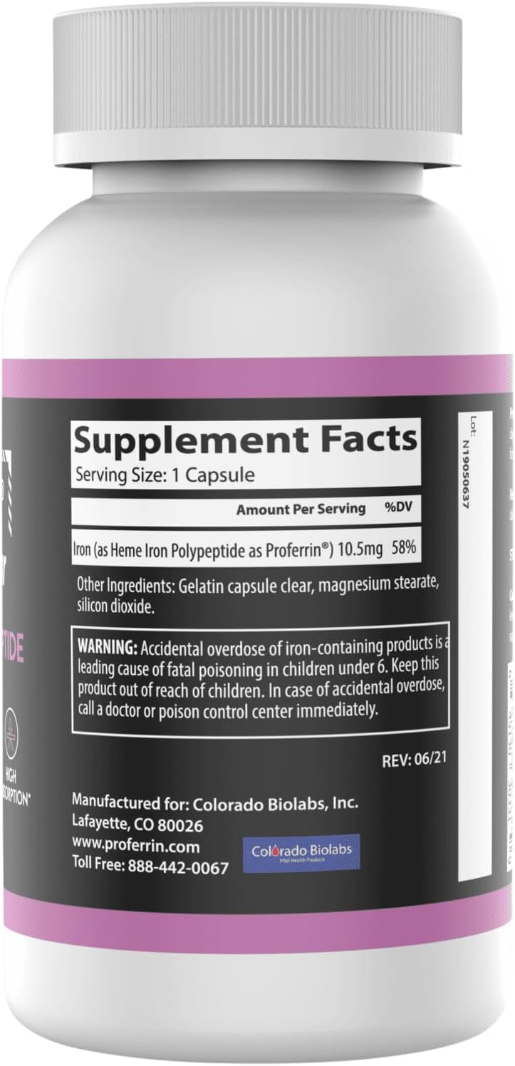 10.5 Mg Of Iron As Heme Iron Polypeptide In A Dye Free Capsule