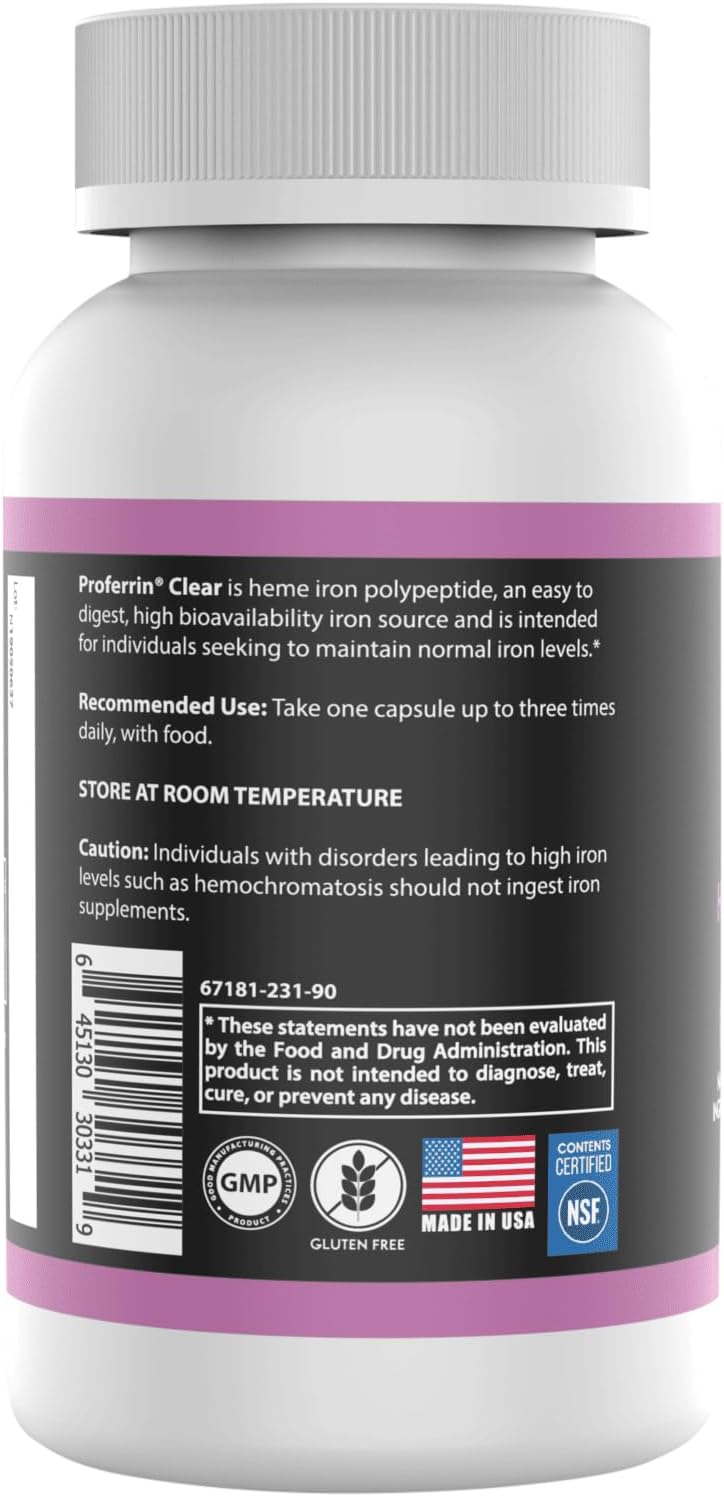 Proferrin Clear Heme Iron Supplement, 90 Capsules- Superior Absorption, Easy On The Gut, Natural, Made In The Us