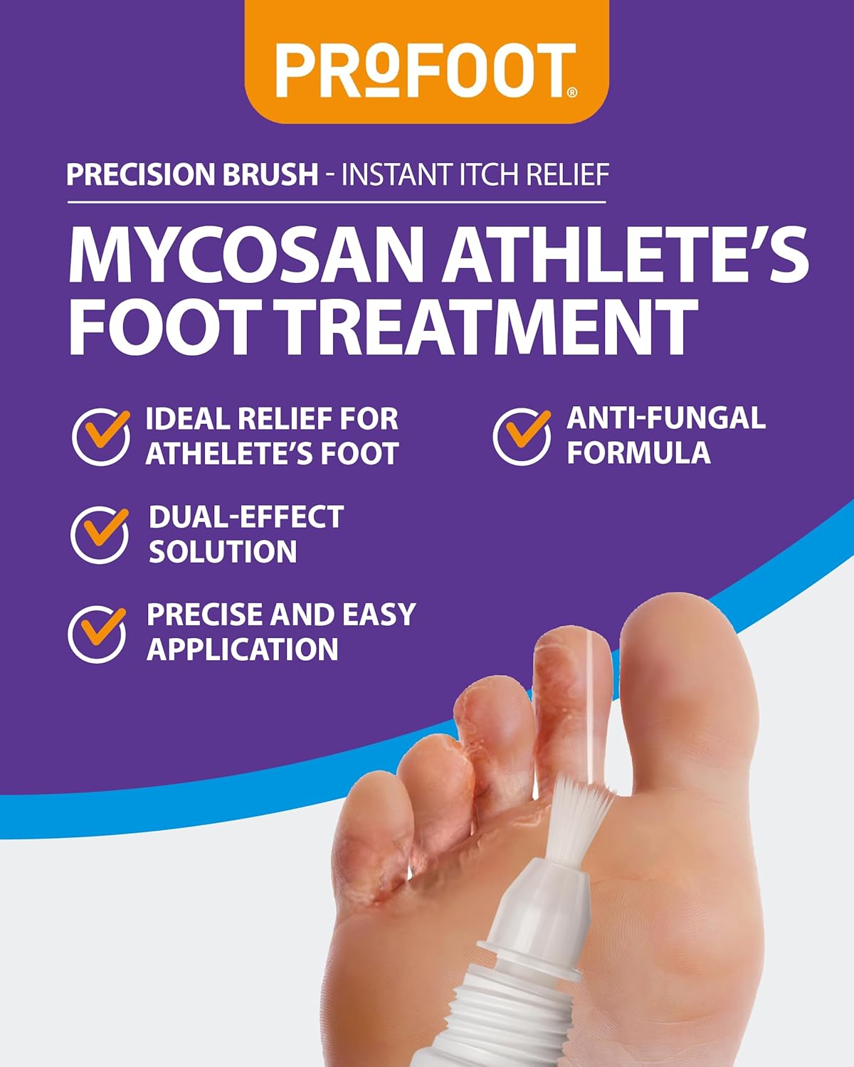 Profoot Mycosan Athlete'S Foot Treatment - Hygenic & Effective Precision Brush - Antifungal Gel, Kills 99.9% Of Fungi - Targeted, Fast Action Relief