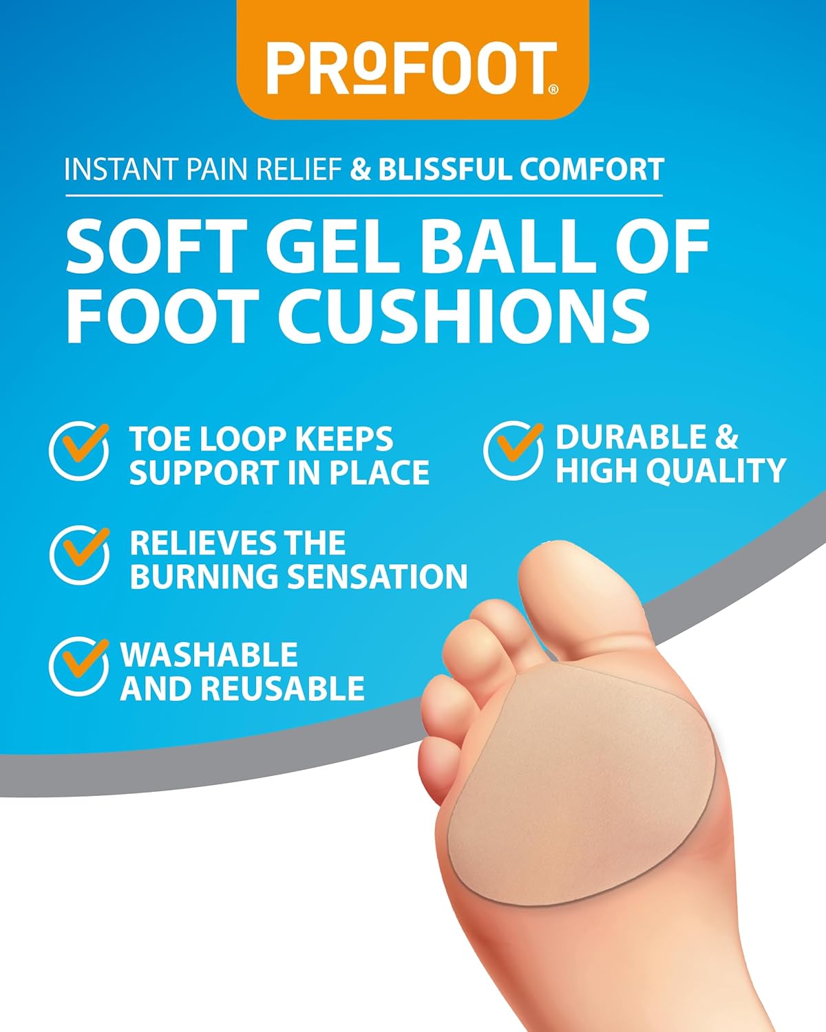Profoot Soft Gel Ball Of Foot Cushions - Instant Pain Relief - Absorbs Shock, Reduces Friction & Redistributes Pressure - Ideal For Metatarsalgia And Morton'S Neuroma