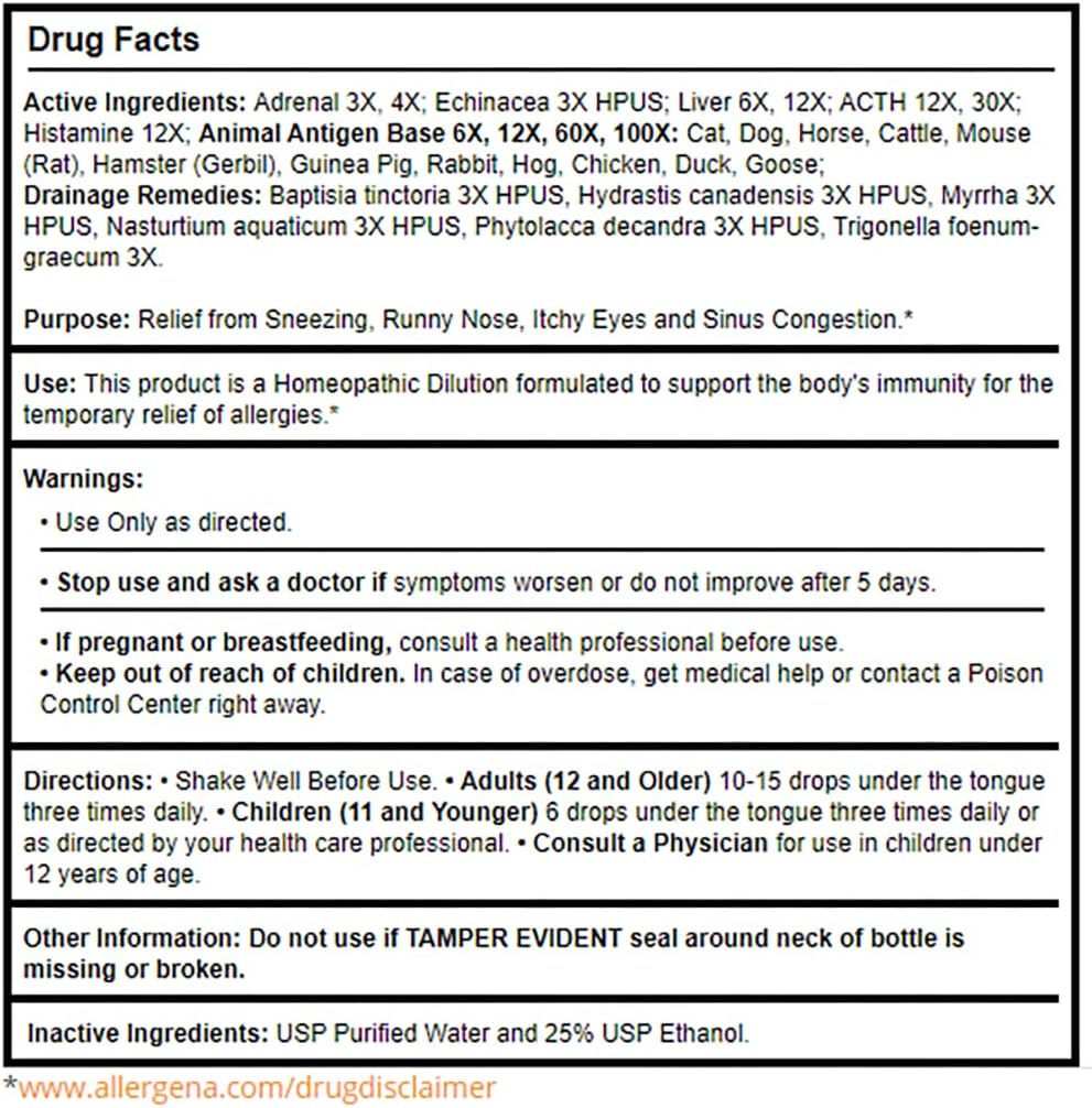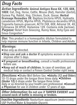 About this item Relief from pet dander caused by cats, dogs, and other animals Easy-to-use dropper bottle Take under tongue Produced in the USA in a cGMP Certified Facility See more product details,Relief from pet dander caused by cats, dogs, and other animals,Easy-to-use dropper bottle,Take under tongue,Produced in the USA in a cGMP Certified Facility