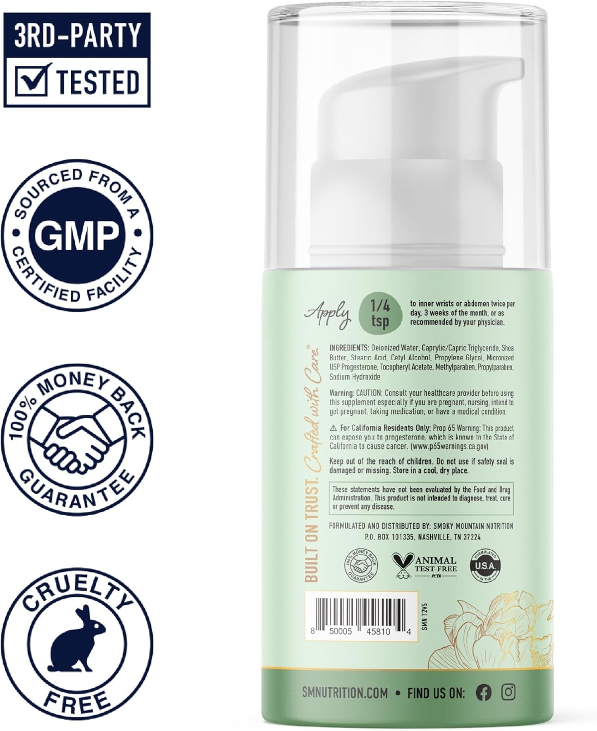 This rich, fast-absorbing cream is formulated with USP micronized progesterone (2000mg per container) to support everyday comfort and balance. The airless 4 oz pump dispenses consistent, measured applications for approximately ~96 servings. Crafted without soy or gluten.