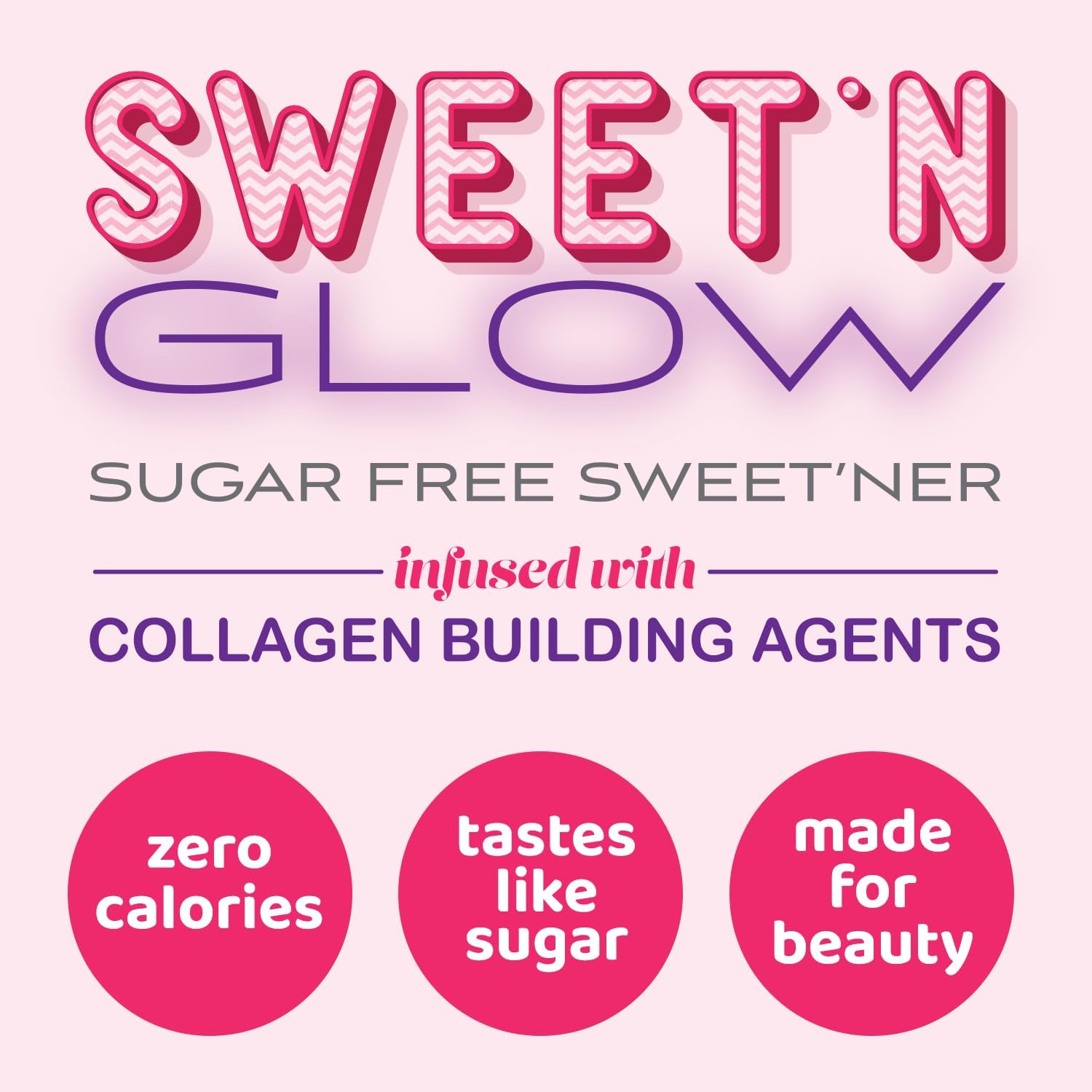 About this item Formulated for Beauty: Sweet N Glow is a sweet-flavored, calorie free collagen booster with incredible added beauty-enhancing elements for your gut, skin, hair and nails. Just Dissolve and Drink: Unlike other collagen products, our Sweet N Glow is designed to be dissolved just like sugar, making it the easiest, most effective collagen promoting supplement you can find. Natural Sweetness: The light, ephemeral sweetness of our sugar-free zero calorie sweetener comes in 2 delicious options - unflavored, and salted caramel ... with more flavors coming soon. Deep Beauty That Glows: Restore skin moisture and smoothness, reduce wrinkles, strengthen hair and nails, and achieve a beautiful, naturally glowy complexion, starting with your gut and working out to your skin. A Guilt-Free Beauty Potion: Gluten-free and sustainably sourced, our enhanced sweetener technology rejuvenates skin, hair and nails. See more product details,Formulated for Beauty: Sweet N Glow is a sweet-flavored, calorie free collagen booster with incredible added beauty-enhancing elements for your gut, skin, hair and nails,Just Dissolve and Drink: Unlike other collagen products, our Sweet N Glow is designed to be dissolved just like sugar, making it the easiest, most effective collagen promoting supplement you can find,Natural Sweetness: The light, ephemeral sweetness of our sugar-free zero calorie sweetener comes in 2 delicious options - unflavored, and salted caramel ... with more flavors coming soon,Deep Beauty That Glows: Restore skin moisture and smoothness, reduce wrinkles, strengthen hair and nails, and achieve a beautiful, naturally glowy complexion, starting with your gut and working out to your skin,A Guilt-Free Beauty Potion: Gluten-free and sustainably sourced, our enhanced sweetener technology rejuvenates skin, hair and nails