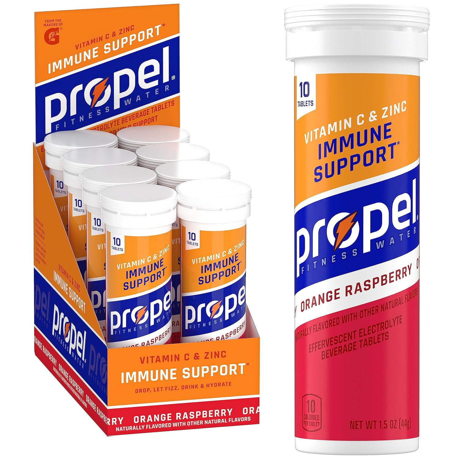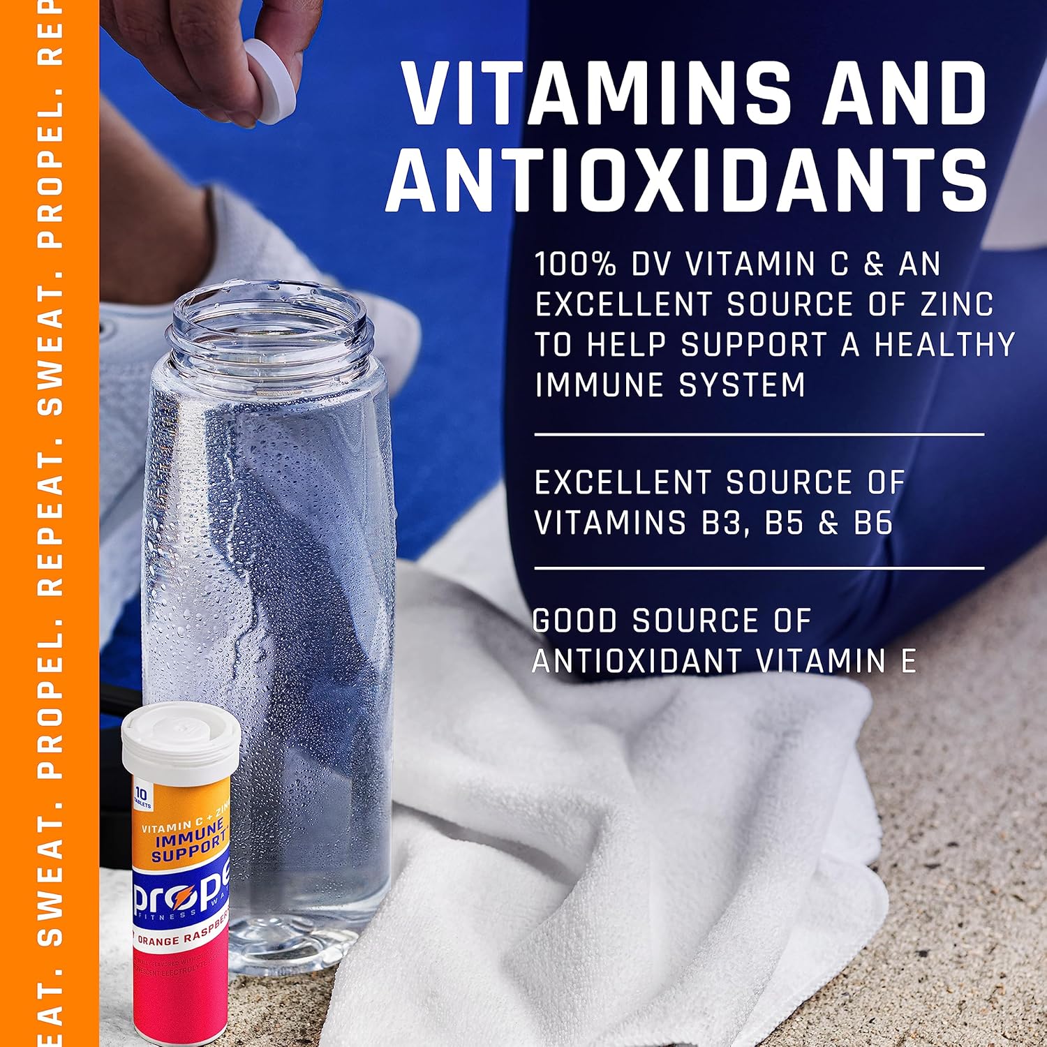Propel Immune Support Hydration Tablets Help Support A Healthy Immune System With 100% Of The Recommended Daily Value Of Vitamin C Per Tablet, And An Excellent Source Of Zinc. They Also Contain Vitamins B3, B5 And B6 And A Good Source Of Antioxidant Vitamin E