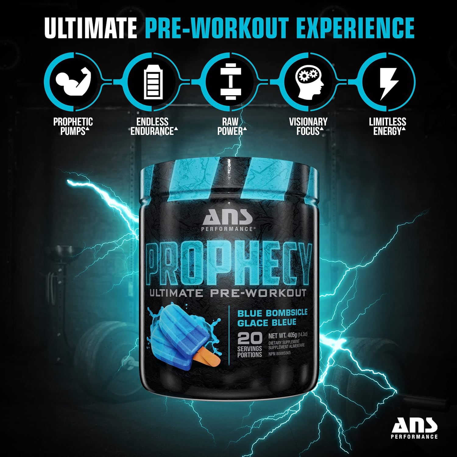Prophecy Pre Workout Powder (20 Servings, 14.5 Oz) β Gluten Free Pre-Workout Formula - Energy & Strength - Sugar Free- Increase Power & Workout Volum (Blue Bombsicle)