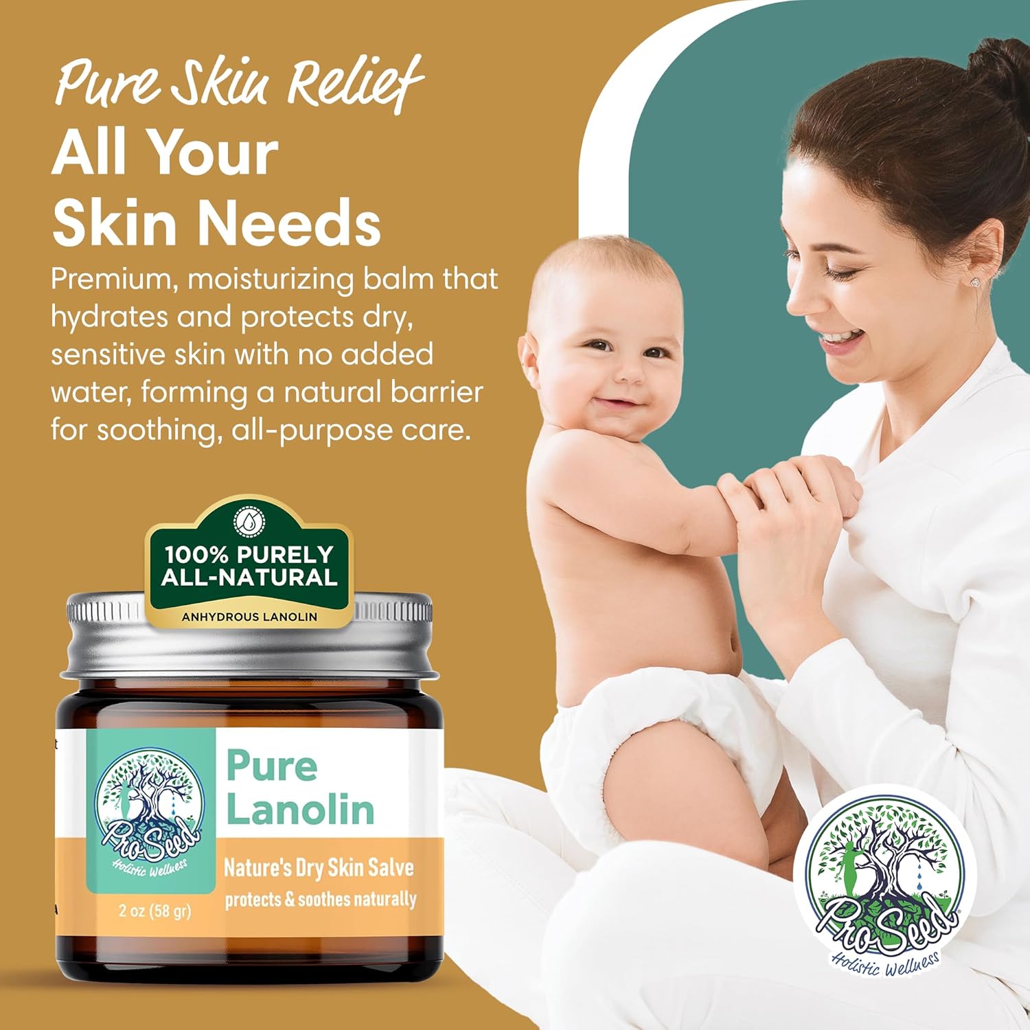 Proseed Handmade Pure Lanolin Cream – Unrefined Balm For Dry Skin, Lips, Nursing & Baby Care – Gentle Moisturizer For Hands, Face & Pets – Petroleum-Free, 12Oz Glass Jar