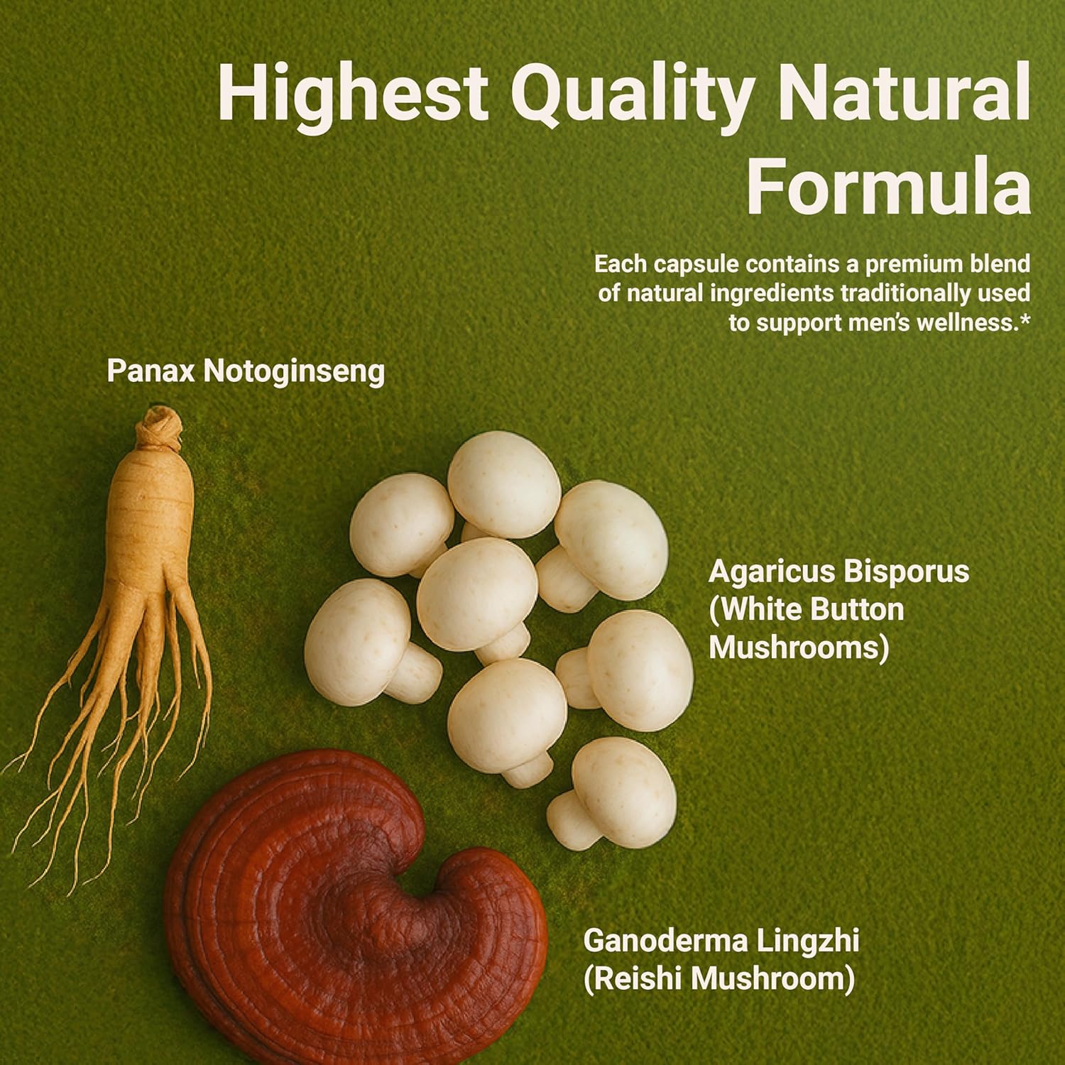 Comprehensive Prostate Support Formulated with Panax Notoginseng, Reishi Mushroom, and White Button Mushroom—ingredients traditionally used to help maintain prostate wellness and comfort