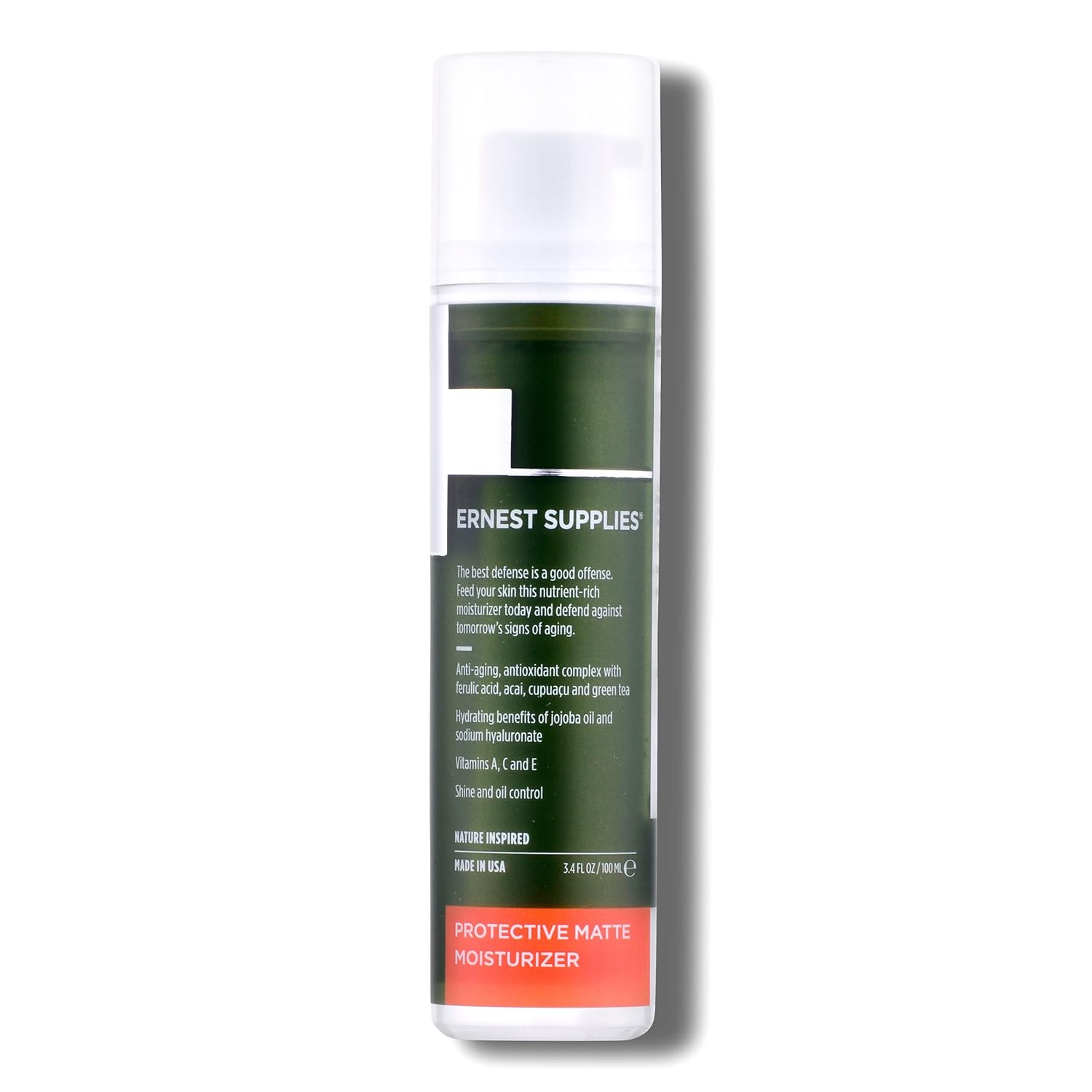 HYDRATING SKIN MOISTURIZER: Designed for the active, modern lifestyle, our lightweight daily face lotion restores moisture while helping to control oil and shine. Save time and effort with our skincare line,ANTI-AGING INGREDIENTS: Contains vitamins A, C & E and the antioxidant benefits of acai, cupuaƧu and green tea extracts to keep your face moisturized and protected from the effects of travel, time and climate,TSA-COMPLIANT, TRAVEL FRIENDLY: Easy-to-transport bottle can be tucked away in your airplane carry-on or gym bag. Ideal for restoring healthy skin after a long flight or workout,INSPIRED BY NATURE: Our all-natural formulations are both good for your skin and better for the environment,MADE IN THE USA: Ernest Supplies is proudly produced in the USA and is featured in publications such as GQ, Menās Journal, Esquire, People