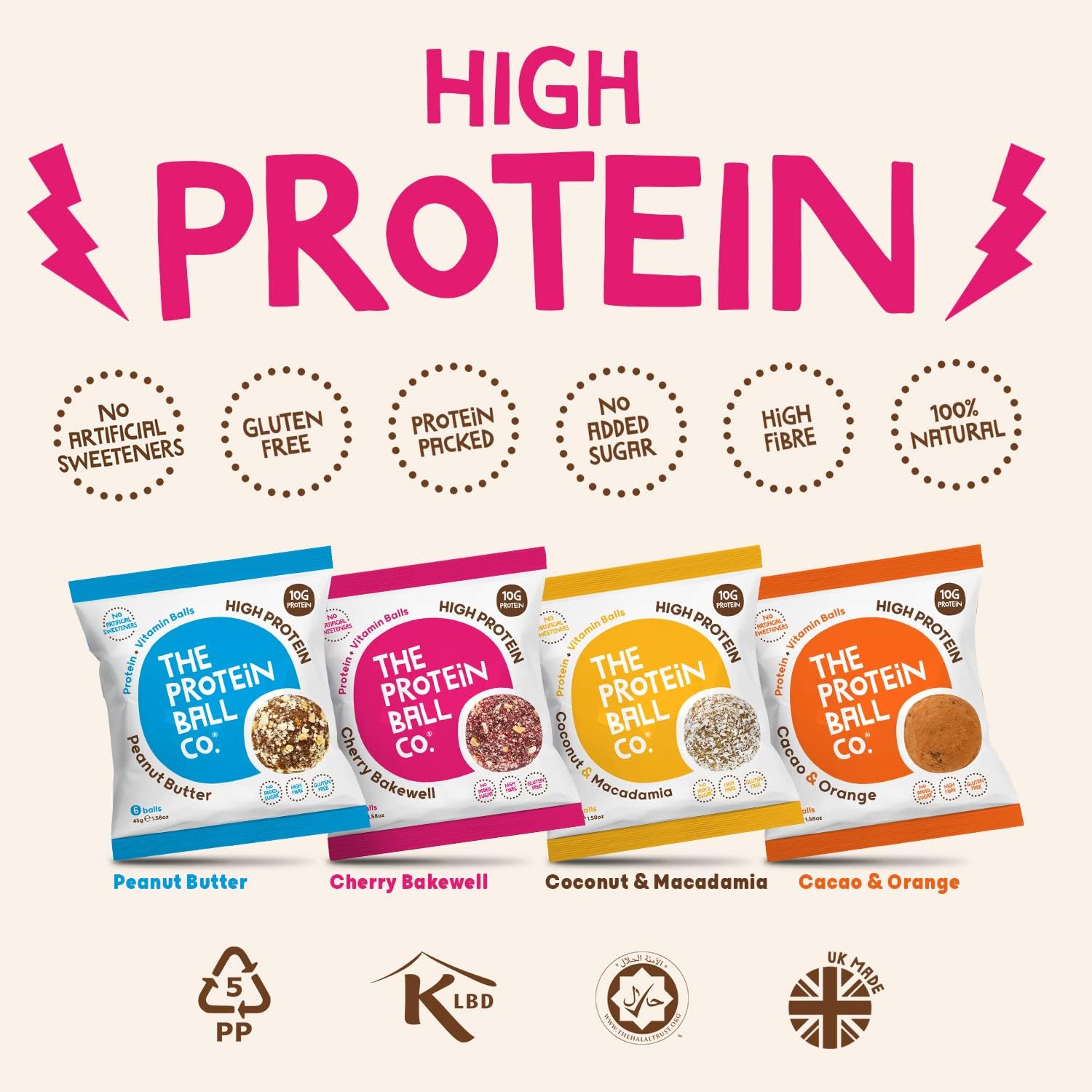 Protein Balls Mixed Variety Pack By The Protein Ball Co - High Protein Range, 100% Natural, Vegetarian, Vitamin Enriched, Protein Snacks - 10 X 45G Bags - High Fibre, Gluten Free, No Added Sugar