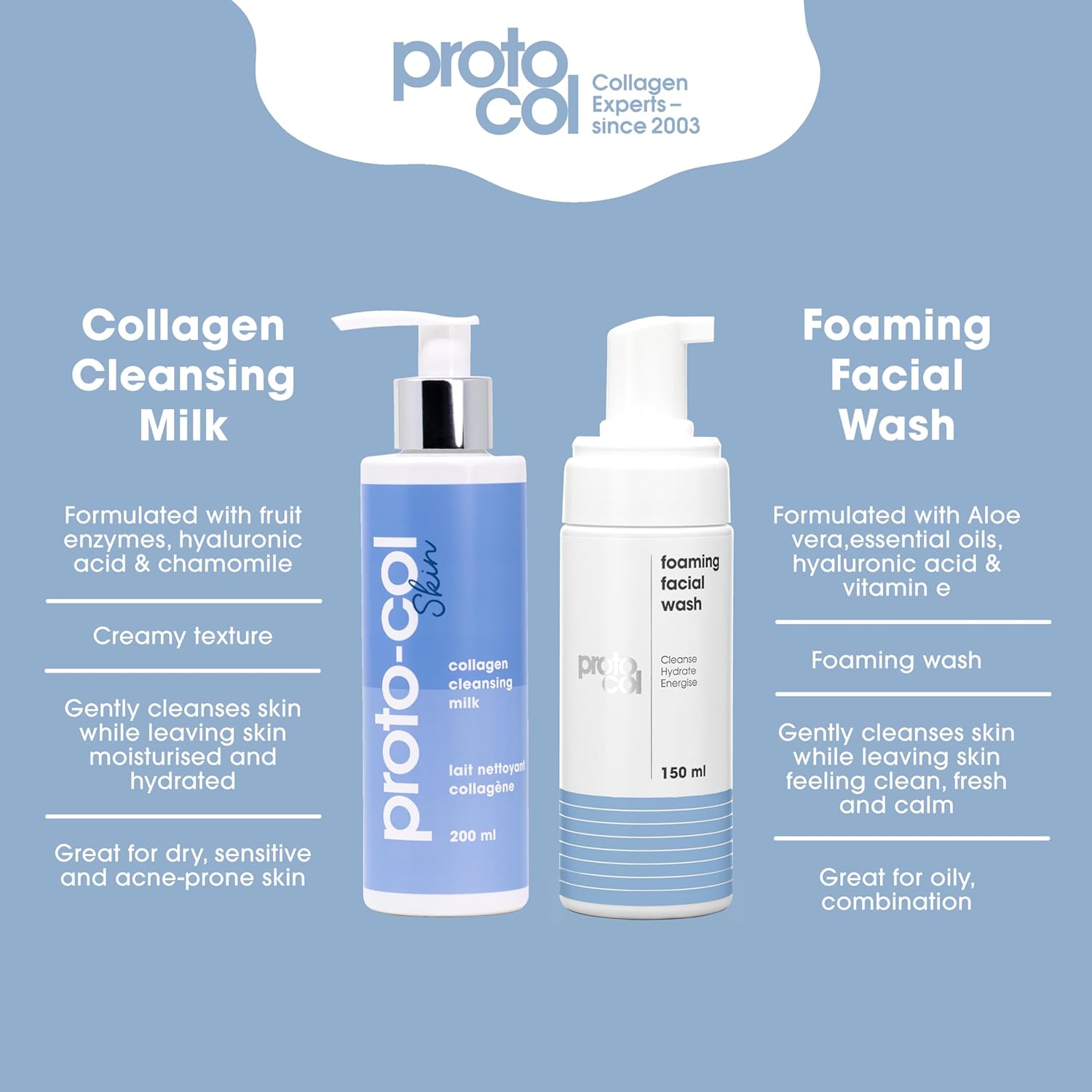 Proto-Col - Cleansing Milk, Rich Collagen And Hydrating Hyaluronic Acid With Powerful Vitamins + Minerals, Deeply Cleanses, Brightens Skin And Removes Impurities (200Ml)