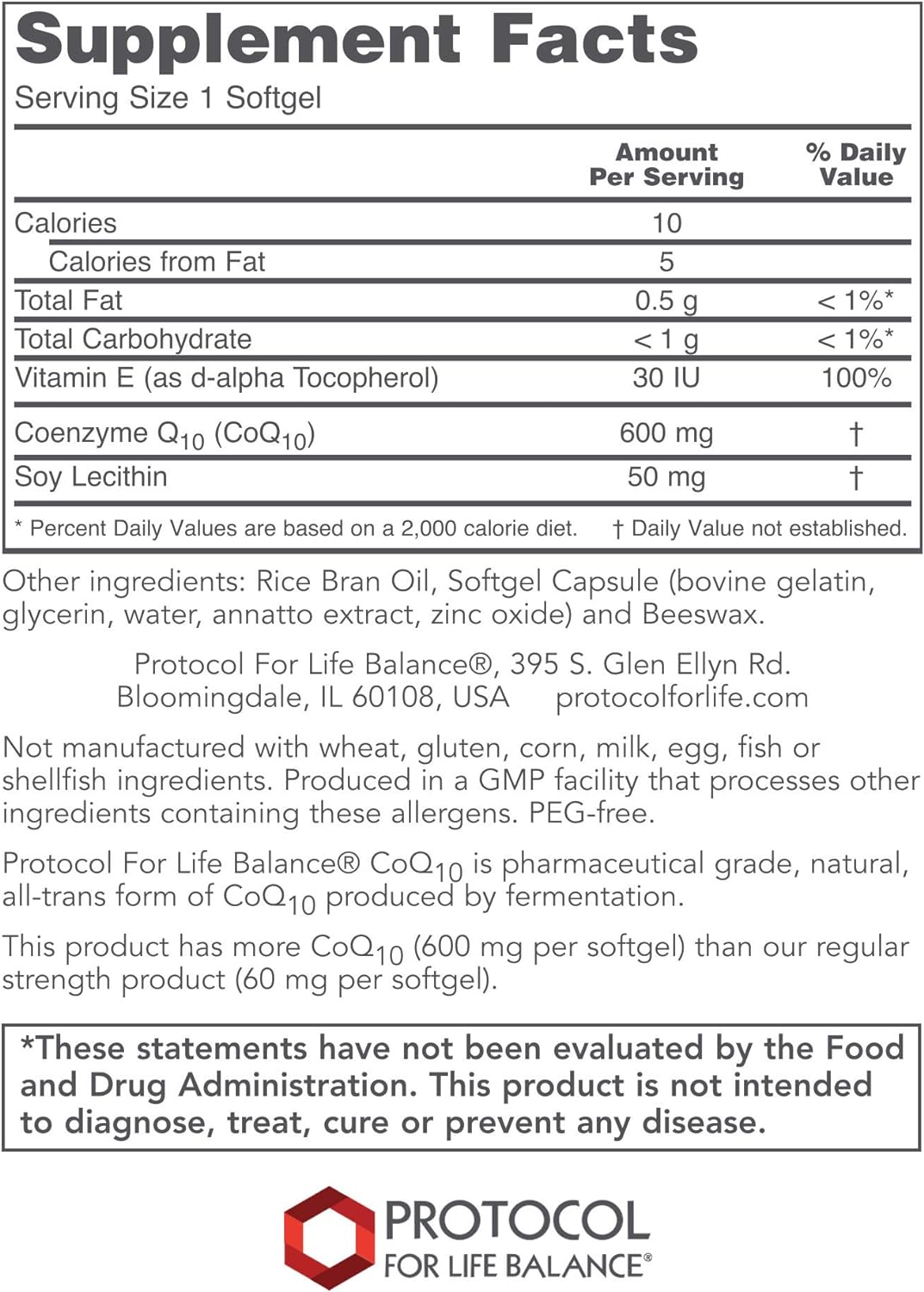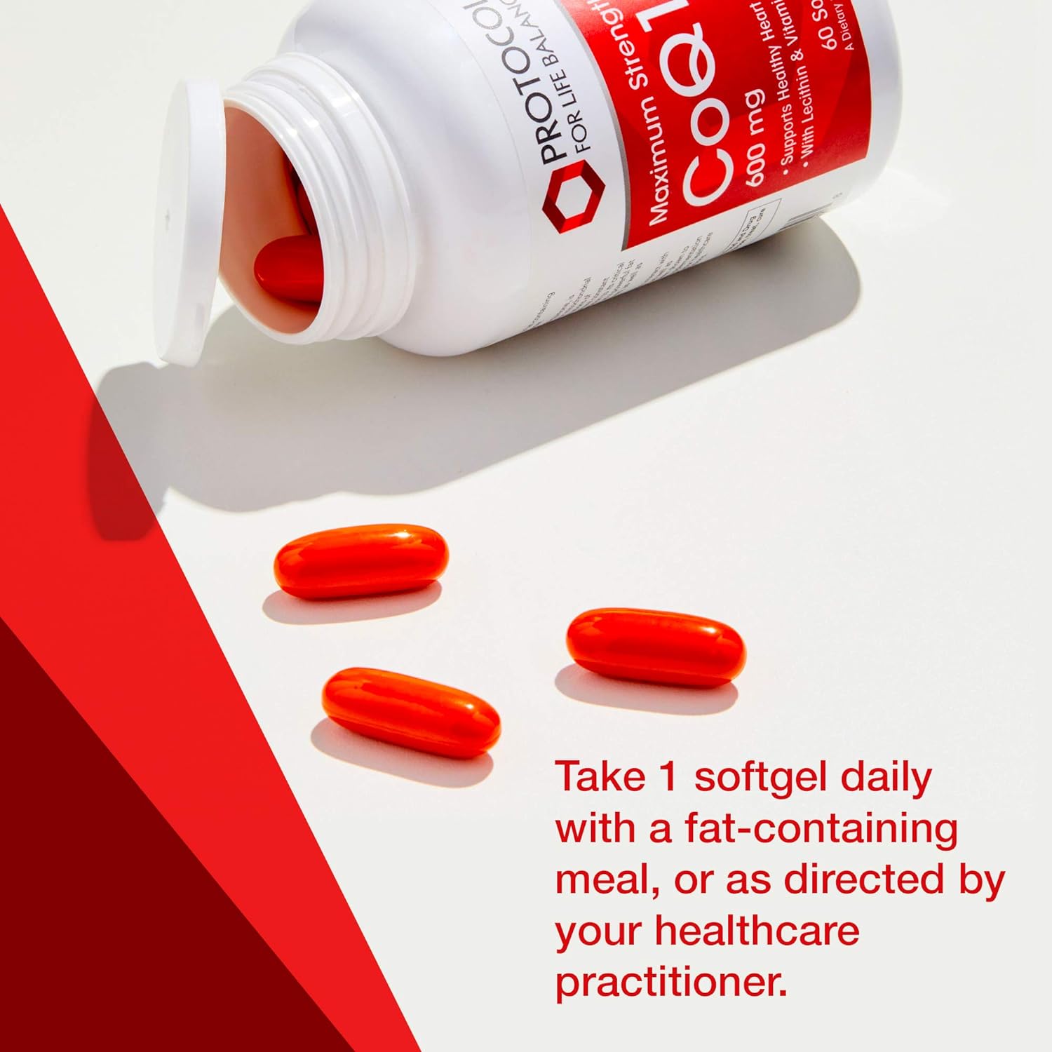 Protocol Coq10 600Mg With Vitamin E - Antioxidant Supplement And Heart Health Support - 60 Softgels