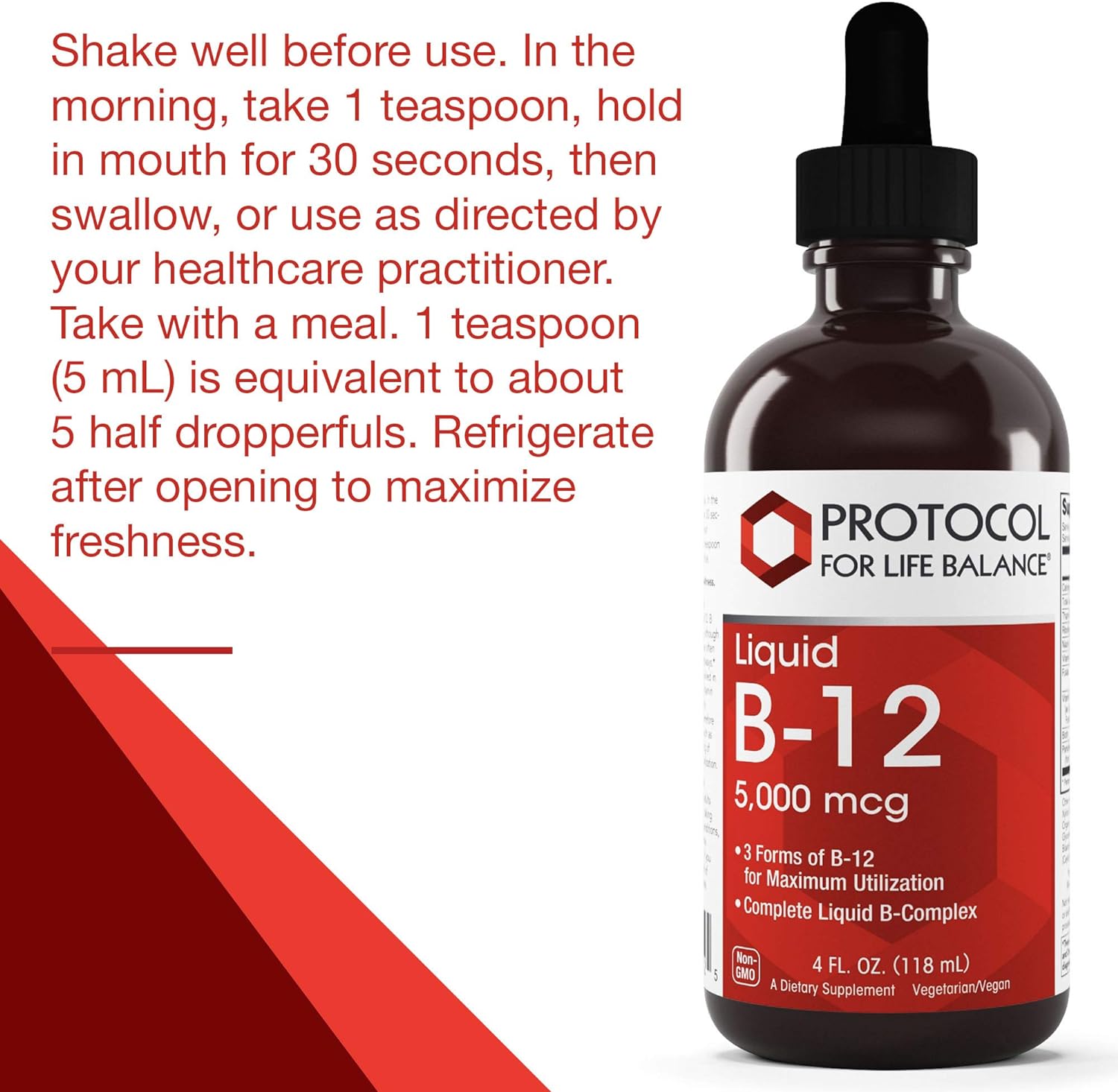 Protocol Liquid B-12 5,000Mcg - Nervous System Support* - With B Vitamins - Dairy Free & Vegan Vitamin B Liquid - 4 Fl Oz