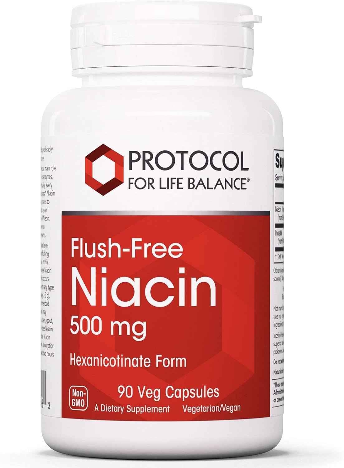 Niacin is an essential water-soluble B vitamin, known for its critical role in energy production and metabolism.* This Niacin 500mg supplement from Protocol for Life Balance provides a potent dose of Vitamin B3, which is crucial in helping your body utilize carbohydrates, fats, and proteins for energy.* Unlike other niacin supplements that can cause a "niacin-flush", our product has inositol hexanicotinate, a stable, non-flushing source of niacin that helps you avoid this common issue.* Niacin is involved in DNA replication and repair, making it a vital part of your body's daily functions.* This makes our niacin supplement a great option for those looking to support their body's natural processes, including energy production and metabolism.* Take 1 capsule daily as needed, preferably with a meal, or as directed by your healthcare practitioner. This formula is dairy free, egg free, kosher, made without gluten, non-GMO, nut free, soy free, and vegan/vegetarian. At Protocol For Life Balance, our mission is to provide high-quality, affordable solutions that empower people to lead healthy and happy lives. Our extensive line of premium natural health products use well-researched ingredients that meet the highest quality standards. Every Protocol For Life Balance product must pass a rigorous internal review to ensure relevance, efficacy, and quality