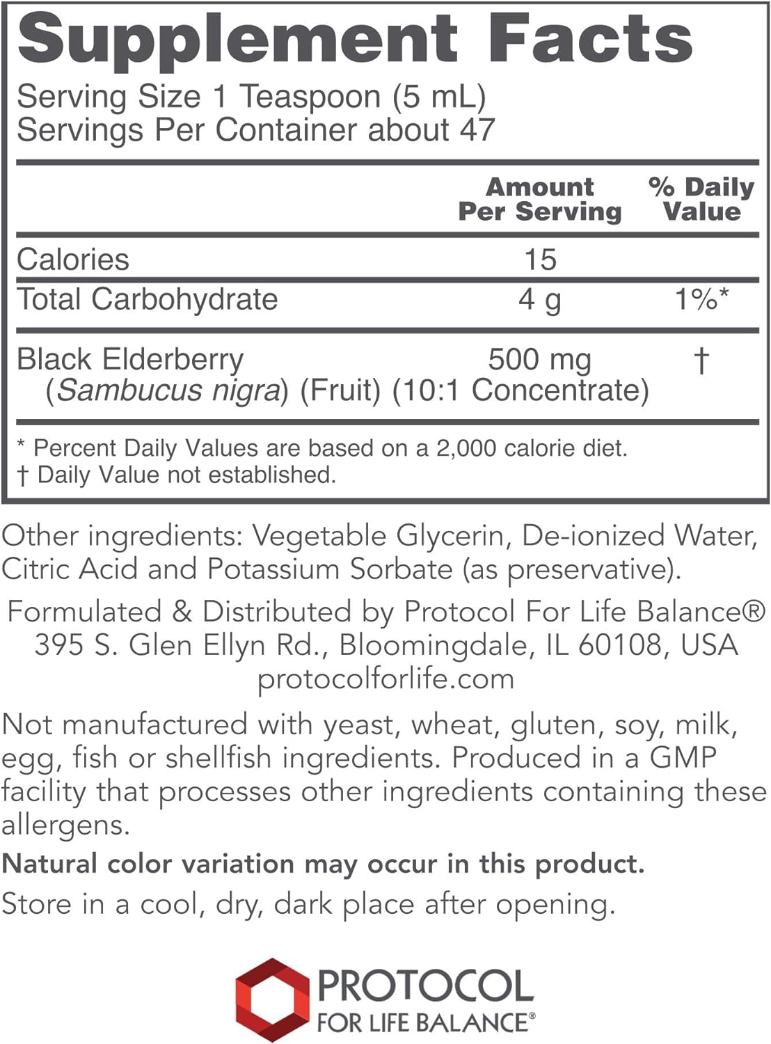 Protocol Sambucus Black Elderberry Liquid - 10:1 Concentrate - 500 Mg Per Serving - 8 Fl Oz