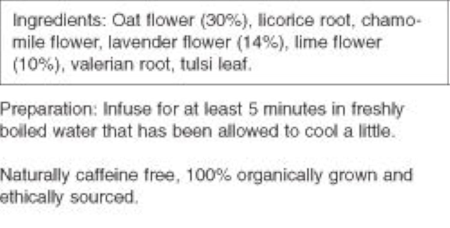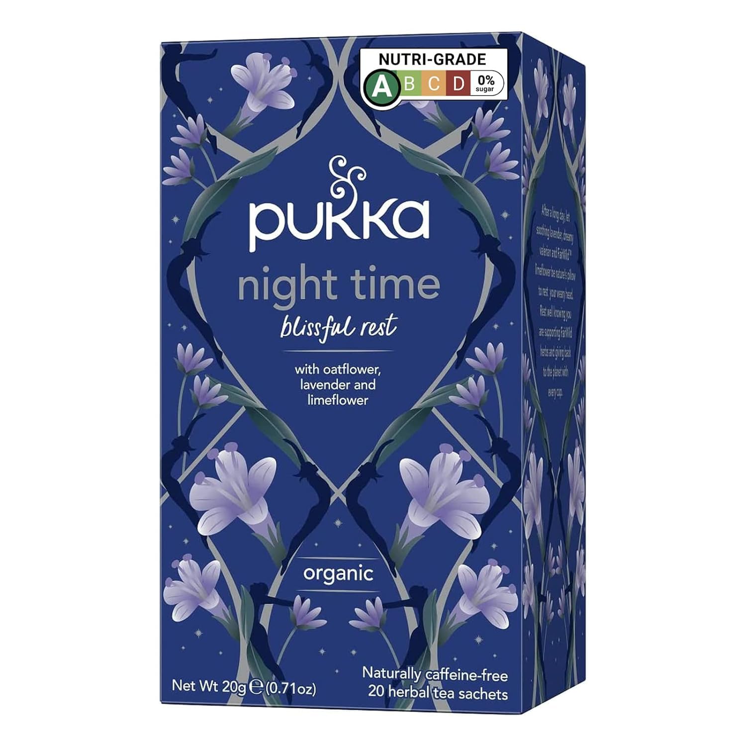 For Peaceful Sleep. Fsc Mixed Sources. Product Group From Well-Managed Forests And Other Controlled Sources. Certified Organic By Sa Certification Uk Ltd. Usda Organic. Kosher Parve. Soil Association Organic. 20 Tea Sachets Individually Wrapped For Freshness. Thank You For Choosing Night Time Tea. It Is A Unique Blend Of Soothing Herbs To Help You Unwind. Drink It In The Evening To Prepare You For A Deep, Restful Sleep And More Refreshed Awakening. Herbs Have Been Used To Support Health For Thousands Of Years. At Pukka We Create Unique Blends To Harness This Incredible Potential. Oat Flower Calms And Nourishes. Lavender Soothes And Relaxes. Lime Flower Helps Settle The Mind. Enjoy It And Sleep Well