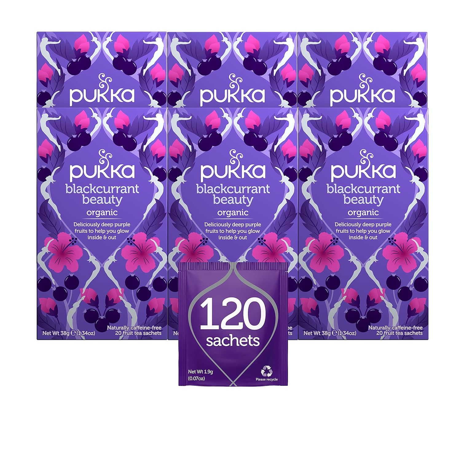 Pukka Organic Blackcurrant Beauty Herbal Tea Bags With Hibiscus And Rosehip Perfect For Inner Glow, 20 Count (Pack Of 6) 120 Tea Bags