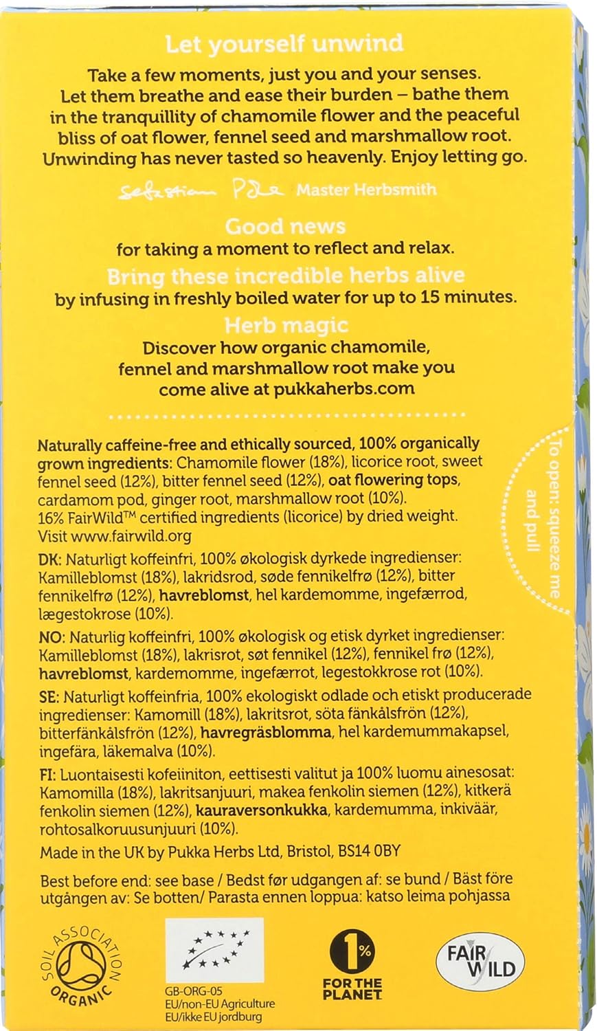 Organic Chamomile, Fennel and Marshmallow Root Tea To Calm and Soothe 20 Tea Sachets Individually Wr