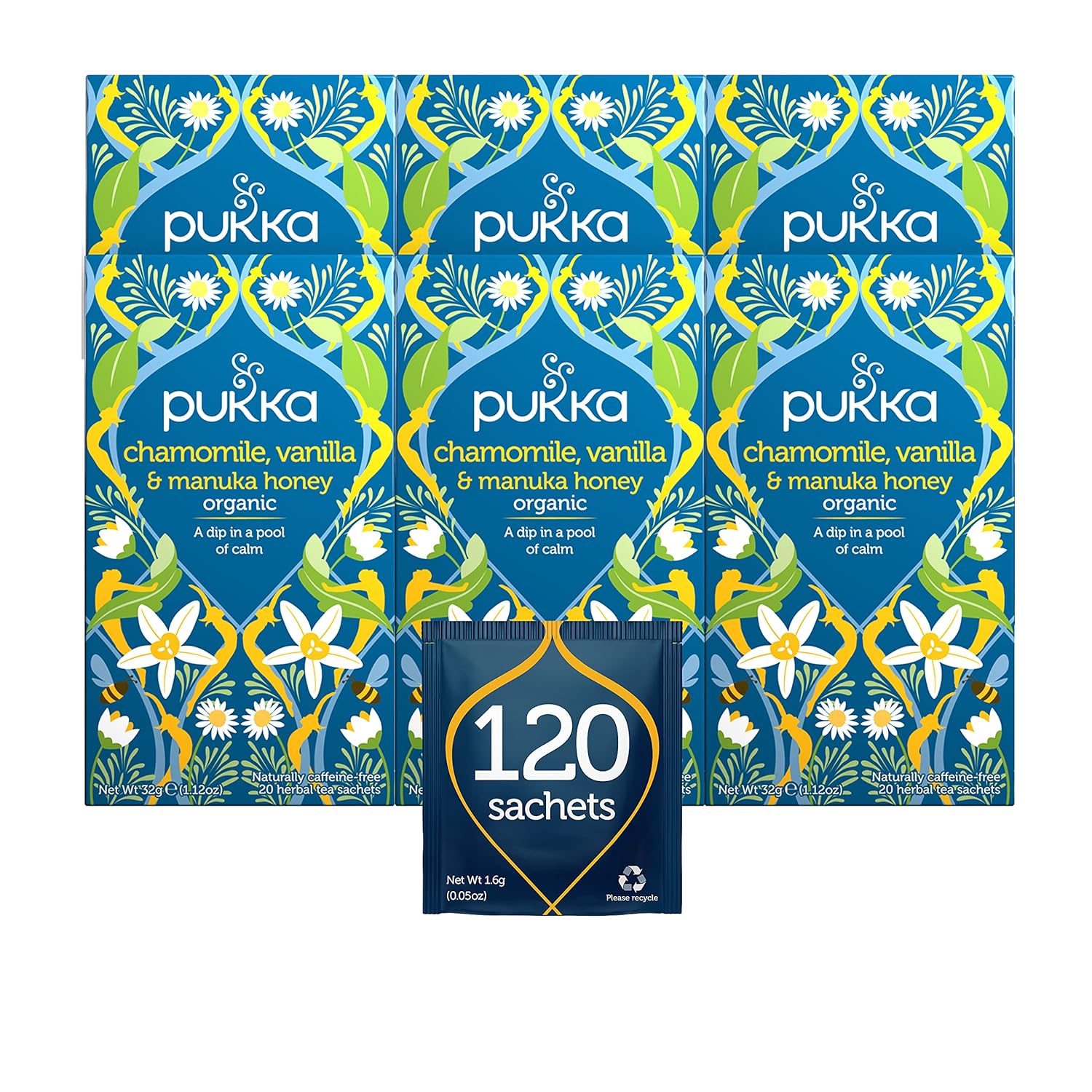 Pukka Organic Tea Bags, Chamomile, Vanilla & Manuka Honey Herbal Tea, Perfect For Moments Of Calm, 20 Count (Pack Of 3) 60 Tea Bags