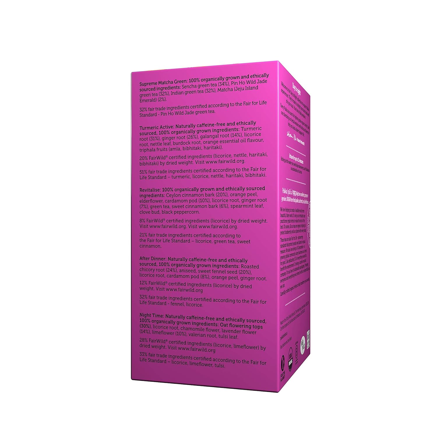 Sip Incredible Organic Moments Of Brilliance Through Your Day. Awaken With Ginseng, Let The Morning Flow With Turmeric, Revitalise With Cardamom And Chill With Roasted Chicory. And Then A Final Cup Of Pillow-Soft Bliss On A Bed Of Night Time Flowers. Each Bursting With Herbal Blessings Of Sun And Stars. Here’S Your Perfect Day To Night