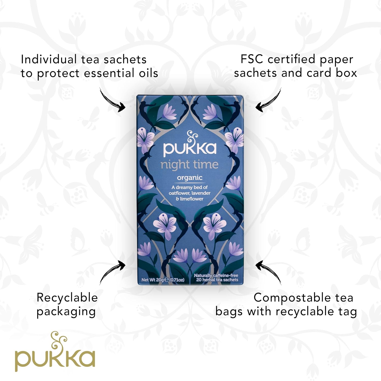 Pukka Organic Tea Bags, Night Time Herbal Tea With Chamomile, Lavendar & Valerian, Perfect For Easing Into A Soothing Sleep, 20 Count (Pack Of 6) 120 Tea Bags