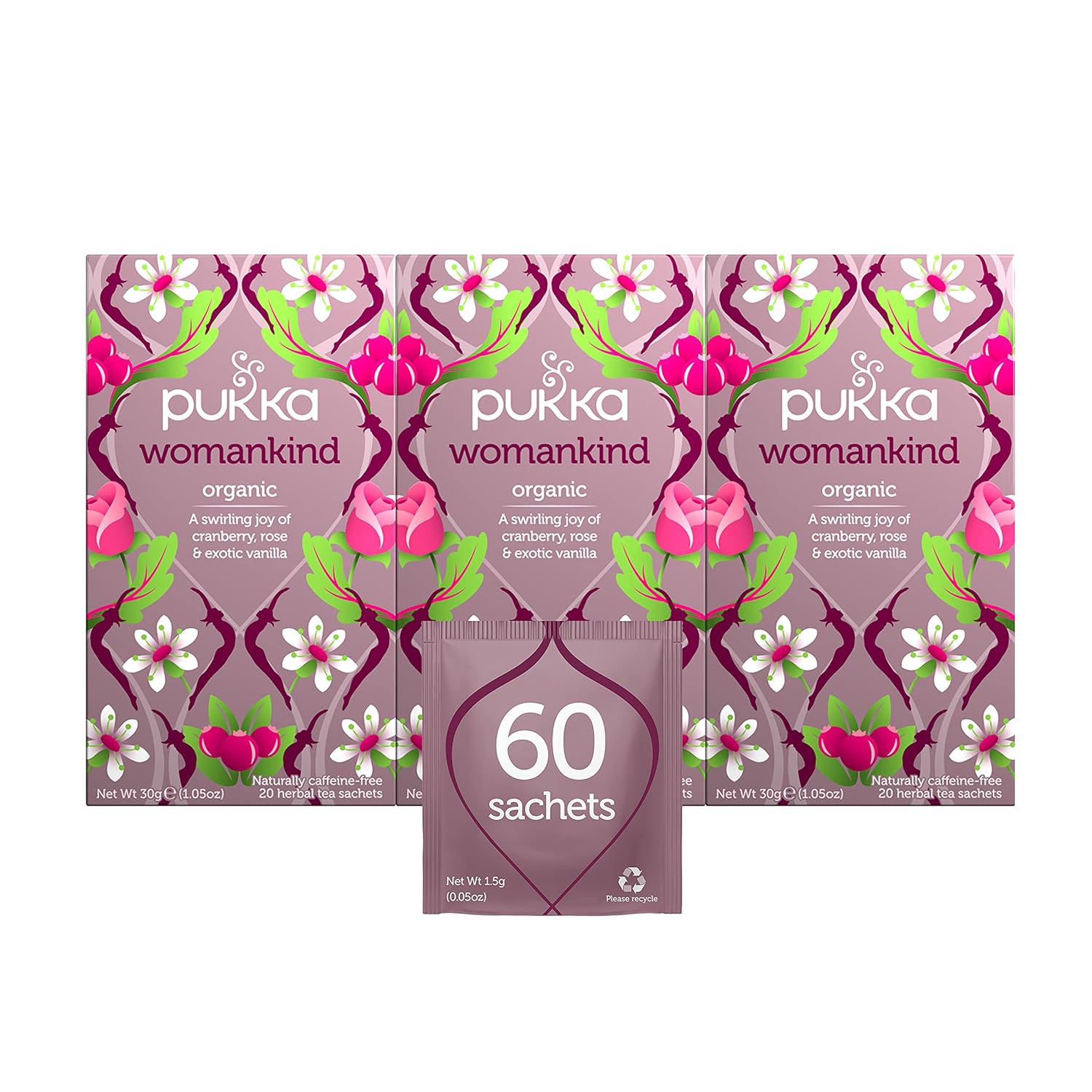 Pukka Organic Tea Bags, Womankind Herbal Tea With Shatavari, Cranberry & Rose Flower, Perfect For Balanced Harmony, 20 Count (Pack Of 3) 60 Tea Bags, Pp-Grce31048