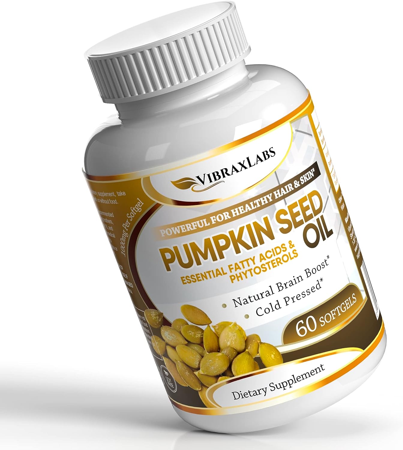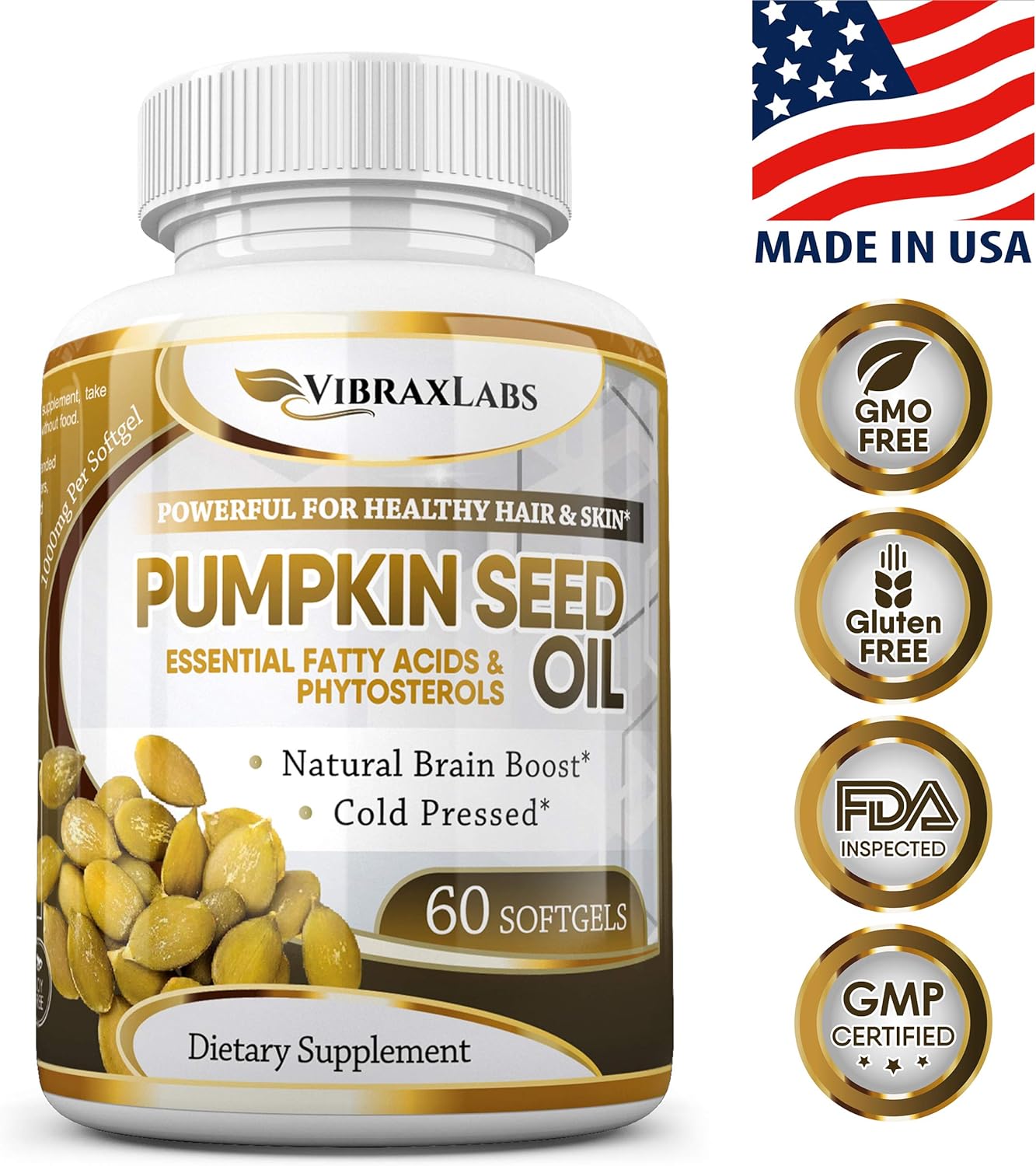 Pumpkin Seed Oil - 100% Cold Pressed Pure 1000mg Extraction - Best for Hair Growth, Younger Looking Skin & Face, Bladder