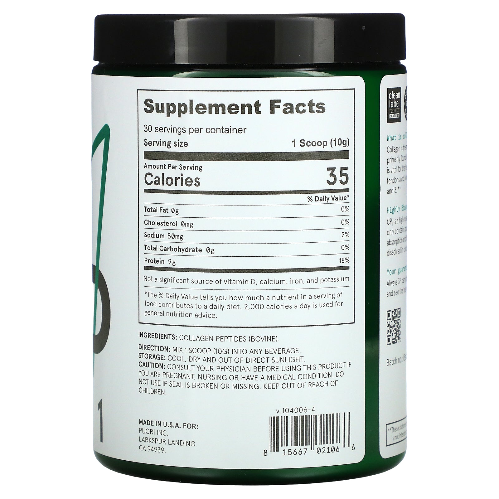 Puori - Cp1 Pure Collagen Peptides Powder - Hair, Skin, Nails - Joint, Bones Support - Hydrolyzed Protein, Unflavored, 30 Servings