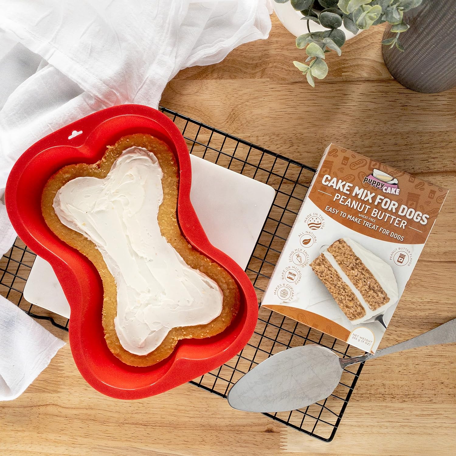 Puppy Cake Cake And Ice Cream All Natural Fluffy & Moist Dog Birthday Cake Kit In With Peanut Butter, Your Choice Of Ice Cream Mix, Bone Silicone Pan And 24 Candles (Bacon) Made In Usa