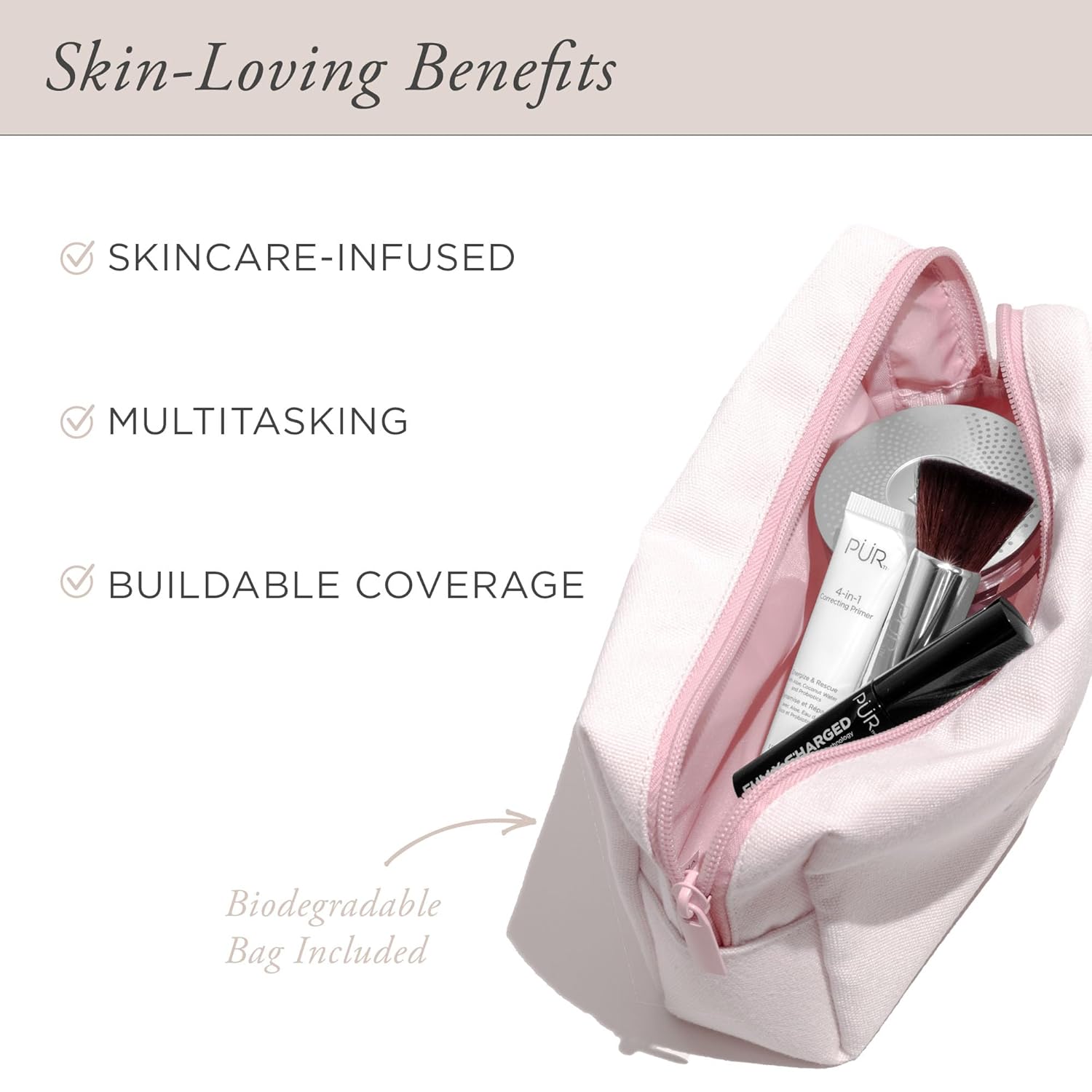 Pür Multitasking Essentials Best Sellers Kit - Makeup Gift Set Includes 4-In-1 Correcting Primer, Fully Charged Mascara, 4-In-1 Pressed Mineral Powder & 1 Chisel Brush