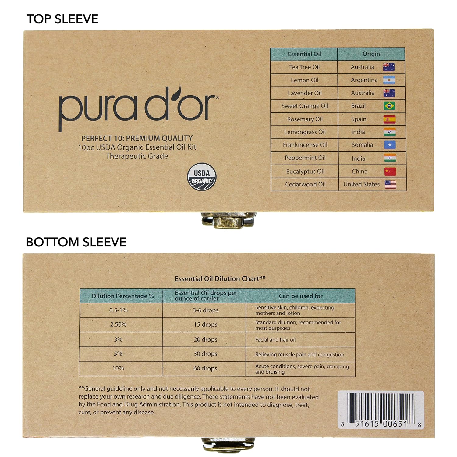 Pura D'Or Organic Perfect10 Essential Oils Set - 10X 10M Wood Box Aromatherapy Gift Set - 100% Pure Therapeutic Grade For Relaxation And Wellness (Lavender, Peppermint, Eucalyptus, Tea Tree And More)
