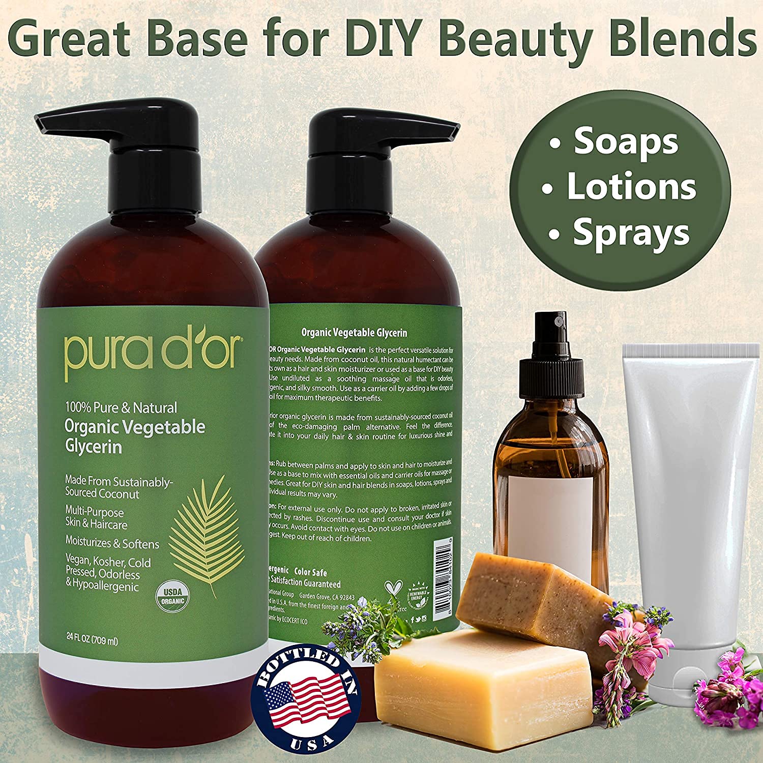 Premium Grade For Skin And Hair Care: Pura DāOr Usda Organic Glycerin, Derived From Coconut, Is An Odorless And Colorless Vegetable Glycerin For Skin And Hair That Provides Superior Moisturization And Maximum Hydration To Complete Your Beauty Ritual