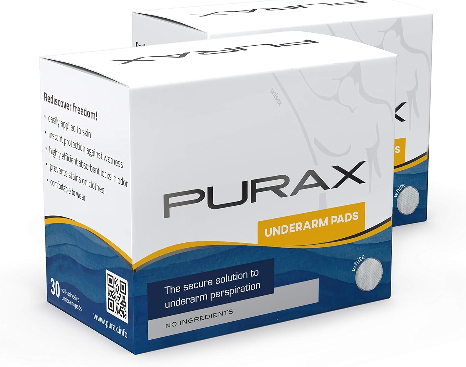 Product Description Secure and discreet protection with PURAX Pure Pads. PURAX Pure Pads have been specially designed to quickly absorb and lock in sweat. By wearing directly on the skin, liquids are immediately absorbed and safely trapped. Odours and stains in the clothing are prevented. Feel groomed, dry and safe in any situation, at work, during sports, leisure or important business appointments. The Purax Pure Pads are breathable, extremely supple and offer a comfortable fit. Thanks to the special shape, PURAX Pure Pads cannot slip and offer a high level of comfort. The absorbent core is made from a highly absorbent, soft fleece that quickly wicks sweat into the inside of the pad and locks securely there. The skin-friendly adhesive edge of PURAX Pure Pads offers excellent compatibility even for sensitive skin. The pads can be removed painlessly and leave no residue. Directions Clean and dry the underarm area before application. Apply the self-adhesive pad to the underarm area. Allow to dry before putting on clothes. P.when('A').execute(function(A) { A.on('a:expander:toggle_description:toggle:collapse', function(data) { window.scroll(0, data.expander.$expander[0].offsetTop-100); }); }); Safety Warning For external use only See more,The gentle solution against underarm sweat,PURAX Pure Pads are self-adhesive and comfortable to wear,Our armpit pads can absorb sweat quickly and reliably keep clothes dry during the day,The underarm pads can be worn in all situations, at work, during sports or in leisure time,International products have separate terms, are sold from abroad and may differ from local products, including fit, age ratings, and language of product, labeling or instructions