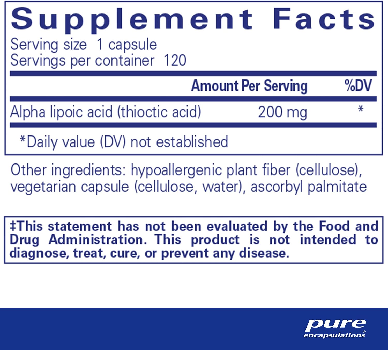 Pure Encapsulations Alpha Lipoic Acid 200 Mg - 200Mg Ala - Liver & Antioxidant Support* - For Nerve Health & Carb Metabolism - Vegan & Non-Gmo Supplement - 120 Capsules